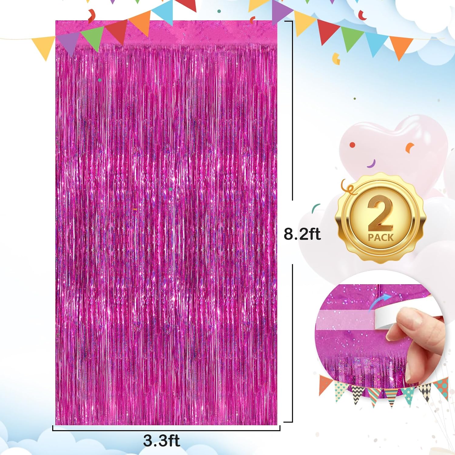 - Materials , The package contains 2 packs of aluminum foil tassel curtains with a size of 3.3 x 8.3ft. It is long enough for any occasion. Please do not stick aluminum foil Streamers curtains to uneven or stained walls to prevent them from falling off