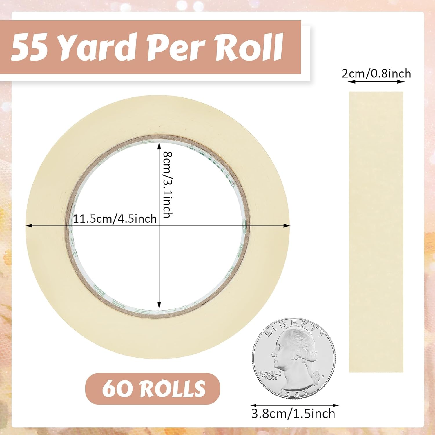 Masking Tape Bulk General Purpose Masking Painting Tape 55 Yards for Painting Home Office School Stationery Arts Crafts Basic Use, Easy Removal(60 Rolls,0.8 Inch)