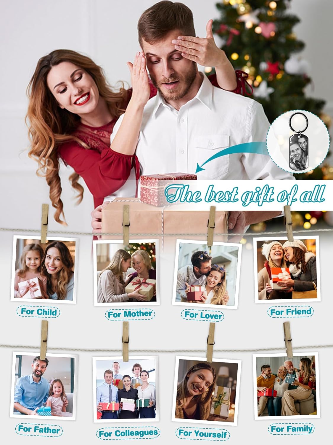 - Worry-free and Effortless Customization: Click "Customize Now", upload a photo, and commence creating a unique keychain. The laser-engraved picture will not fade, is resistant to scratches, facilitating worry-free customization. You can also add a personalized message, inspiring phrases, or special anniversaries. For instance: "Drive safe, I need you here with me!"