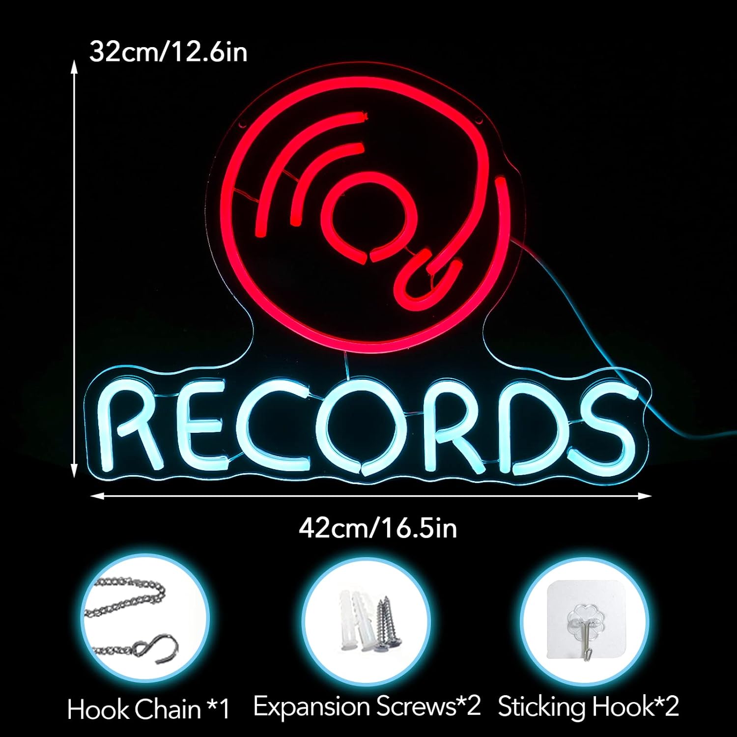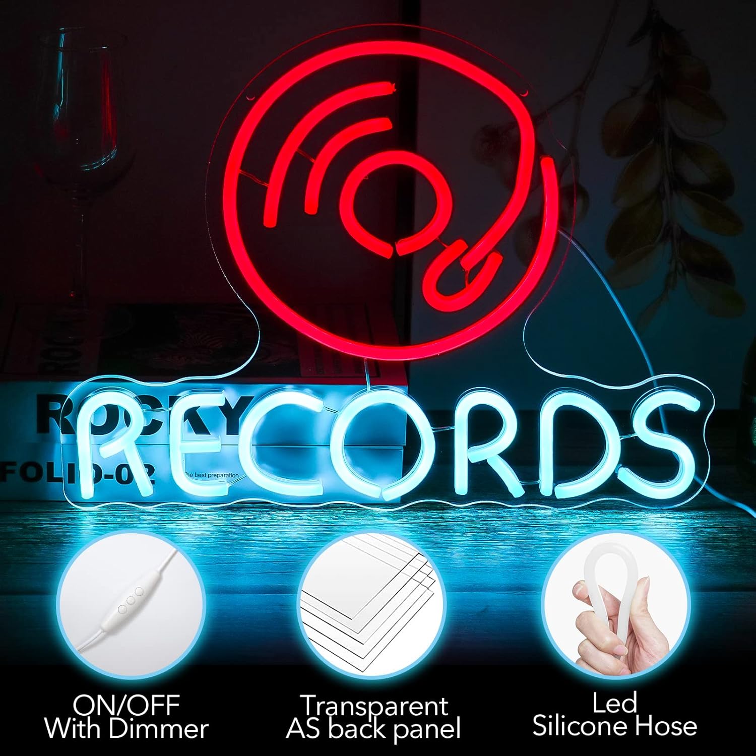 - 【Energize Your Mood With Good Vibes!】: Add Romantic For Wall Decoration! “Records” Neon Lights Sign Is An Ideal Bedroom, Studio, Game Room, Bar And Club Decor , Making The Simple Life More Colors And Interesting. Energy With This “Records” Neon Sign To Create The Vibe You'Ve Always Dreamed Of!