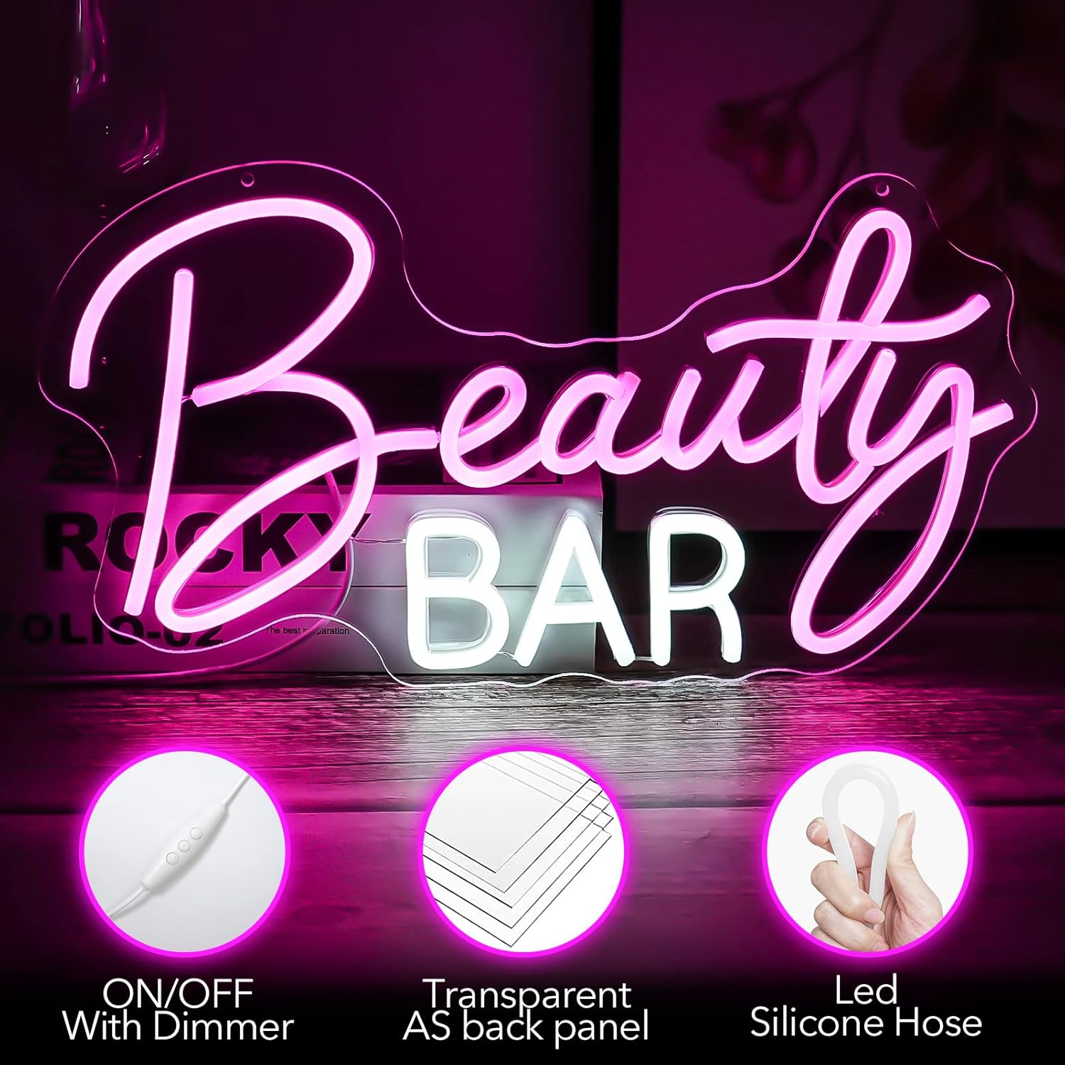 - 【Energize Your Mood With Good Vibes!】: Add Romantic For Wall Decoration! “Beauty Bar” Neon Lights Sign Is An Ideal Bedroom, Dressing Table, Bestie Gatherings, Bar And Club Decor , Making The Simple Life More Colors And Interesting. Energy With This “Beauty Bar” Neon Sign To Create The Vibe You'Ve Always Dreamed Of!