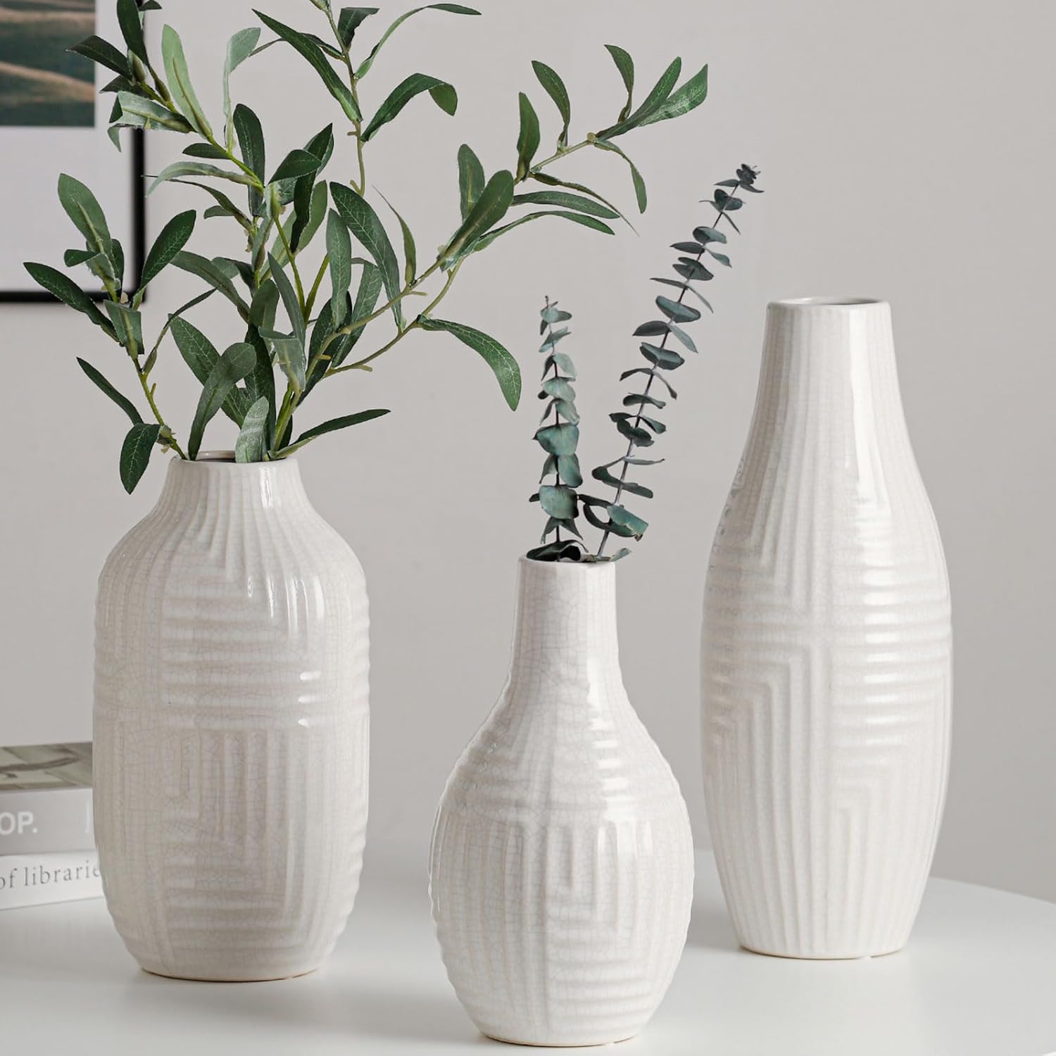 - Good Ideal Gift- Ceramic white vases is perfect to use for wedding, table centerpieces for wedding, graduation, party, coffee table, restaurant, mantel fireplace and bathroom, living room decor.