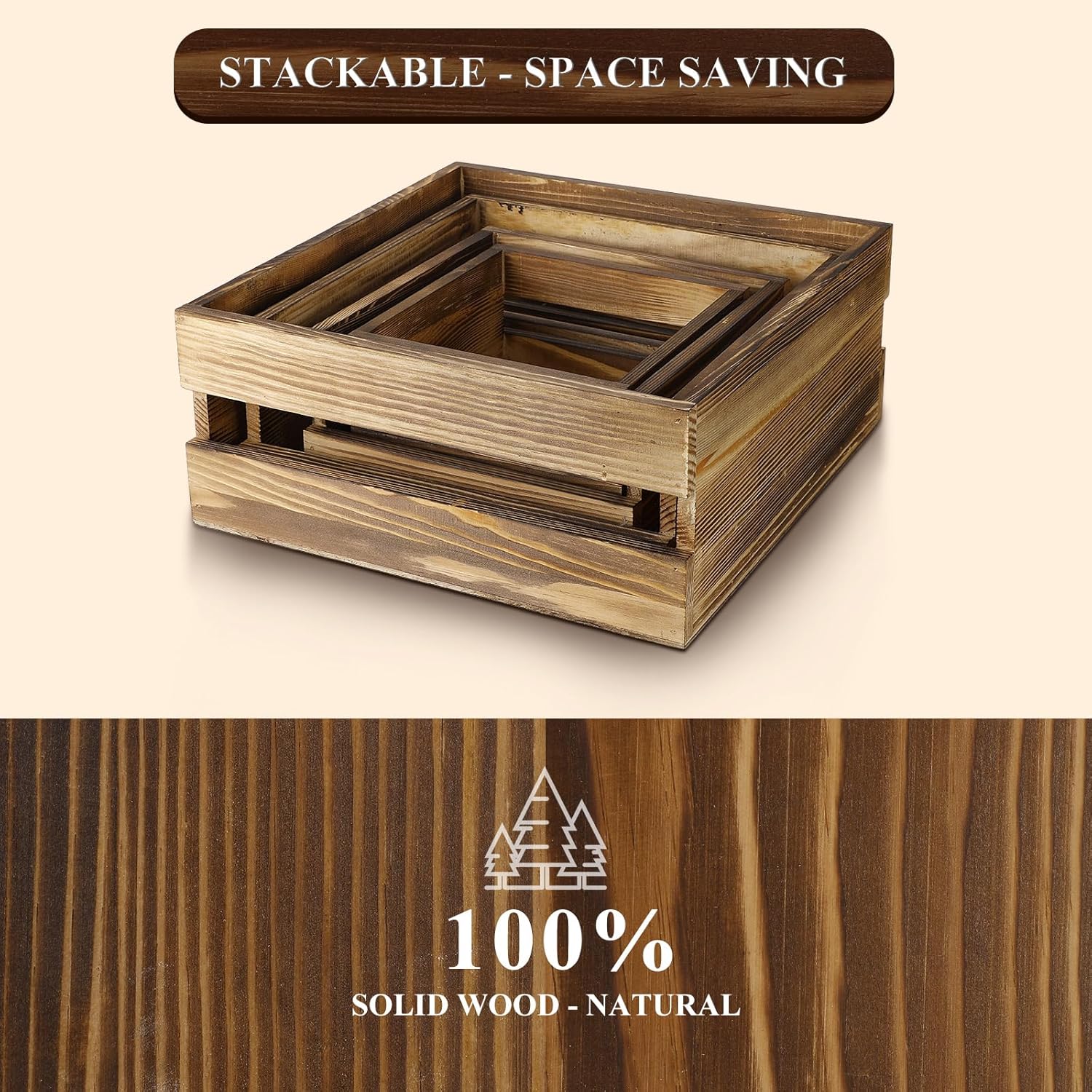 Sieral 4 Pieces Wood Cupcake Display Stand Decorative Dessert Appetizer Cake Stand Risers Wooden Crate Rustic Cake Risers for Storage for Party Christmas Halloween Wedding Decor(Rustic Dark Brown)