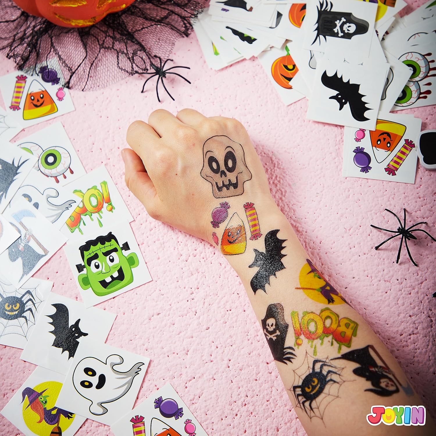 JOYIN 144 PCS Halloween Temporary Tattoos for Kids, 12 Designs Bulk Fake Tattoos Stickers for Halloween Party Favors Decorations, Supplies Trick or Treat Game Gifts Goodie Bags, Class Game Prizes