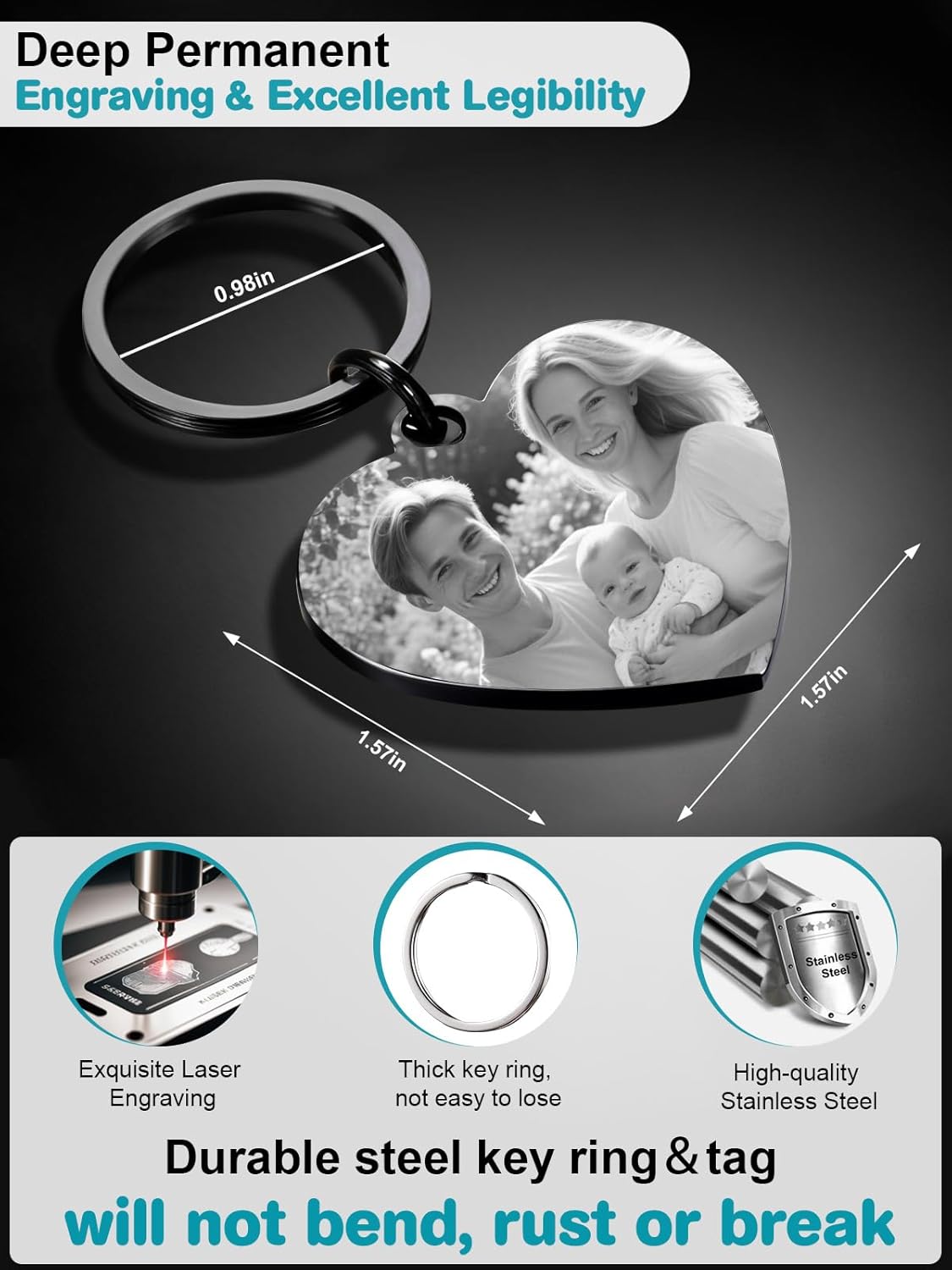 - Personalized Picture Keychain: We use cutting-edge laser engraving technology to ensure clear front photo and back text, making your keychain uniquely personalized and easily recognizable. Unleash your imagination to create a unique keychain for yourself or your loved ones