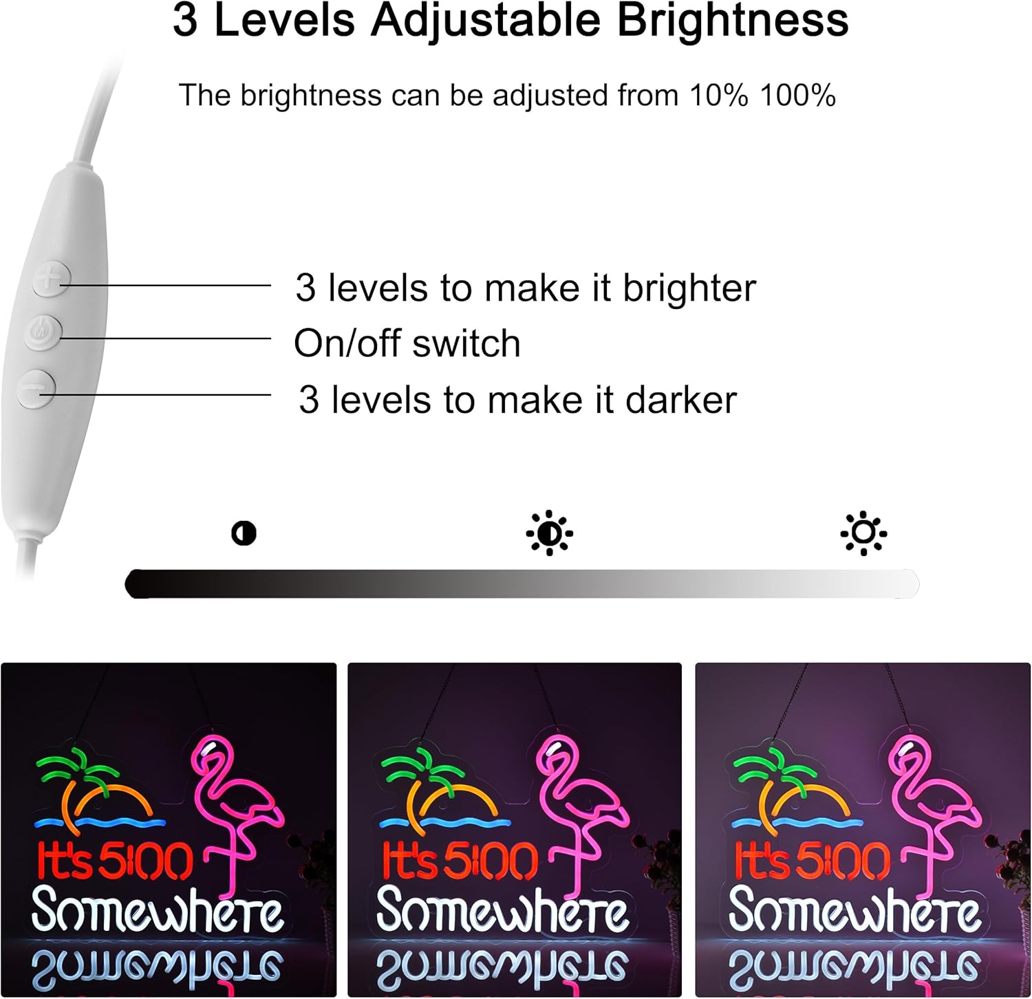 - Flamingo Somewhere neon sign has dimmer on the switch , the brightness can be adjustabl