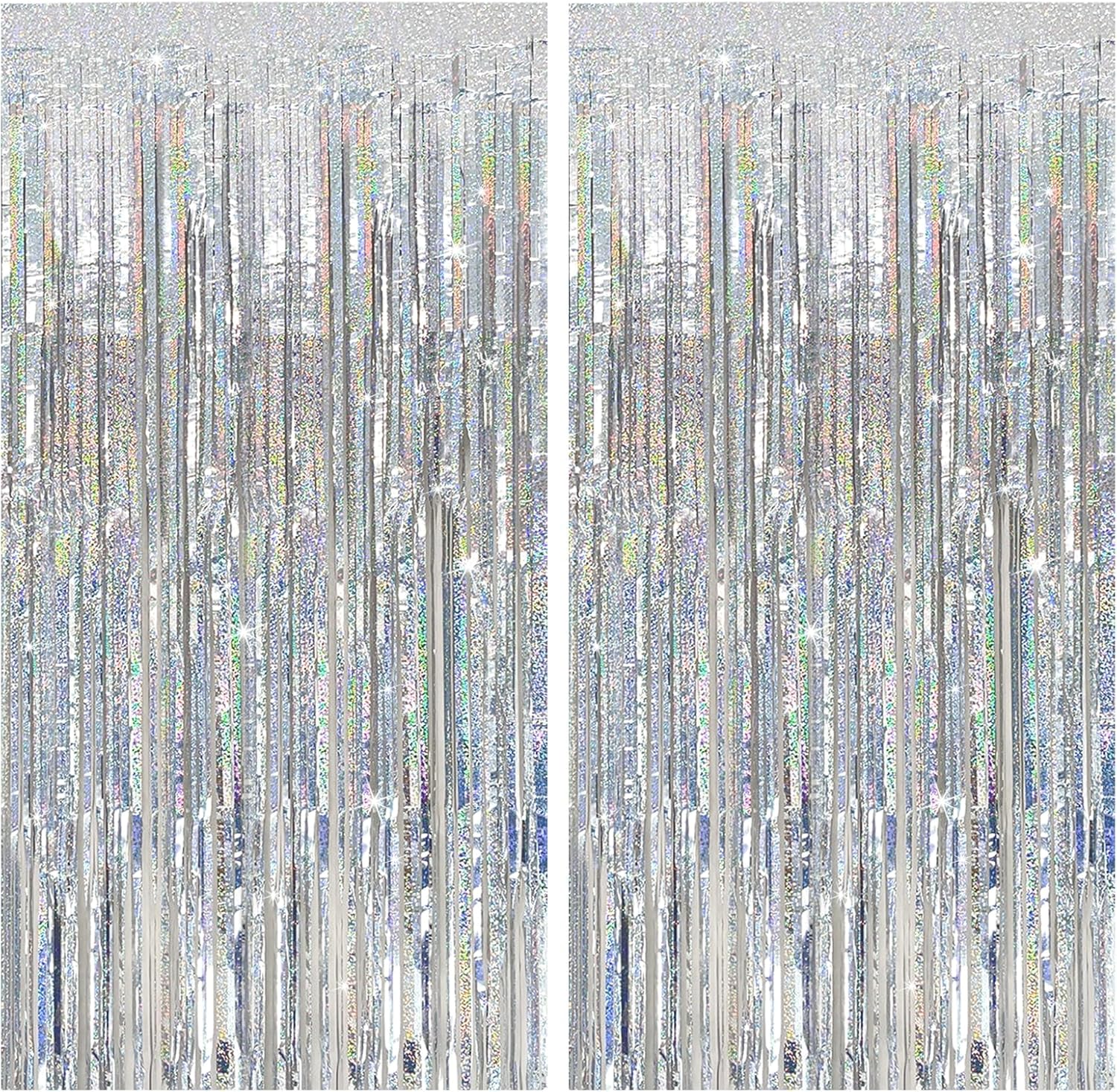 - Tinsel Curtain Party Backdrop: 2Packs/Set, each pack curtains size is 3.28 ft x 6.56 ft, enough length for decorate your party. Perfect accessories for decorating doors and walls to create an impressive decoration for parties, events, and photo booths.