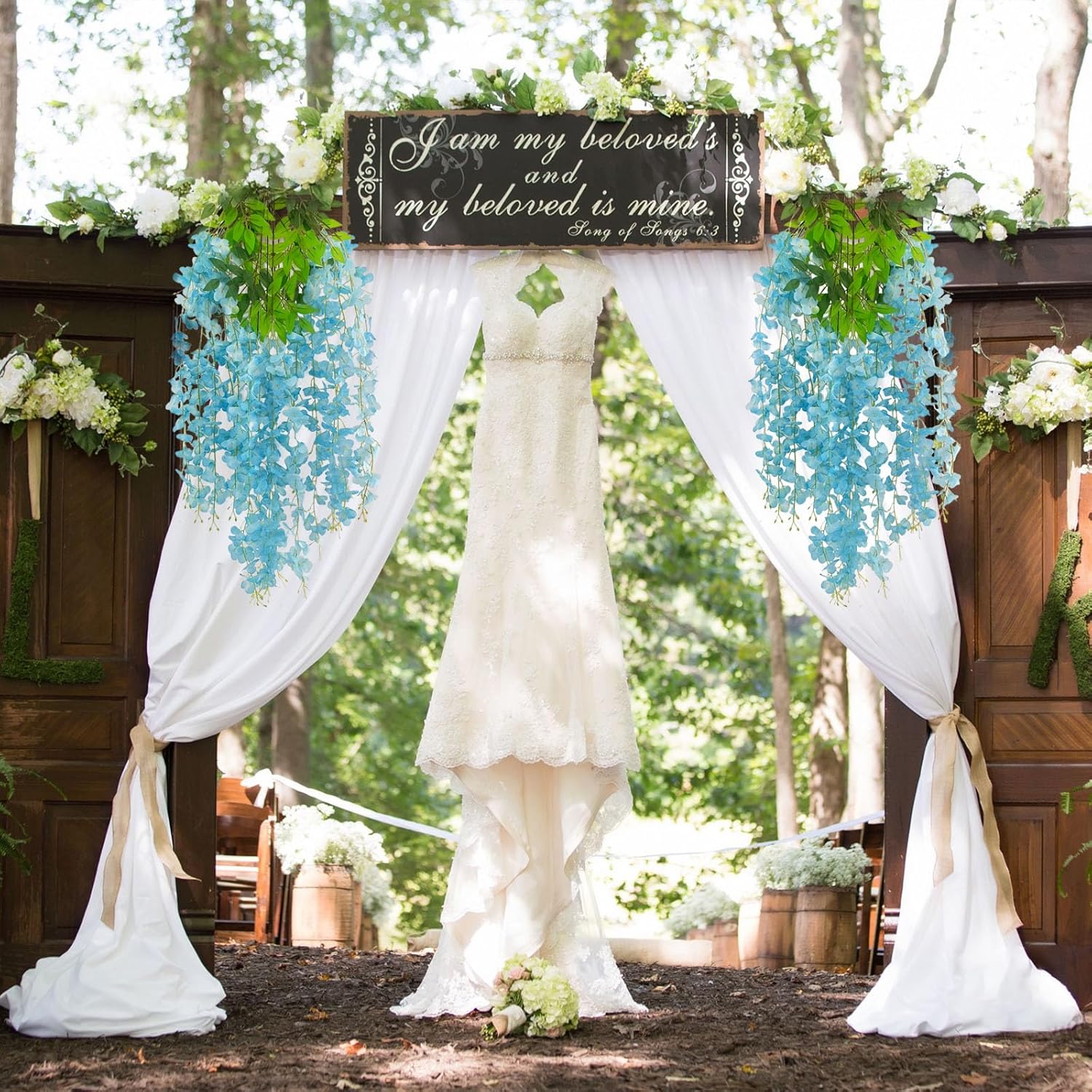 - 【Easy to Install】The lake blue wisteria flower stem is made of durable metal wire and covered with plastic. You can bend the wisteria flower in any shape to satisfy your decoration imagination without damaging it. And the wisteria flower is very easy to install and remove, you can reduce a lot of troubles on installation.