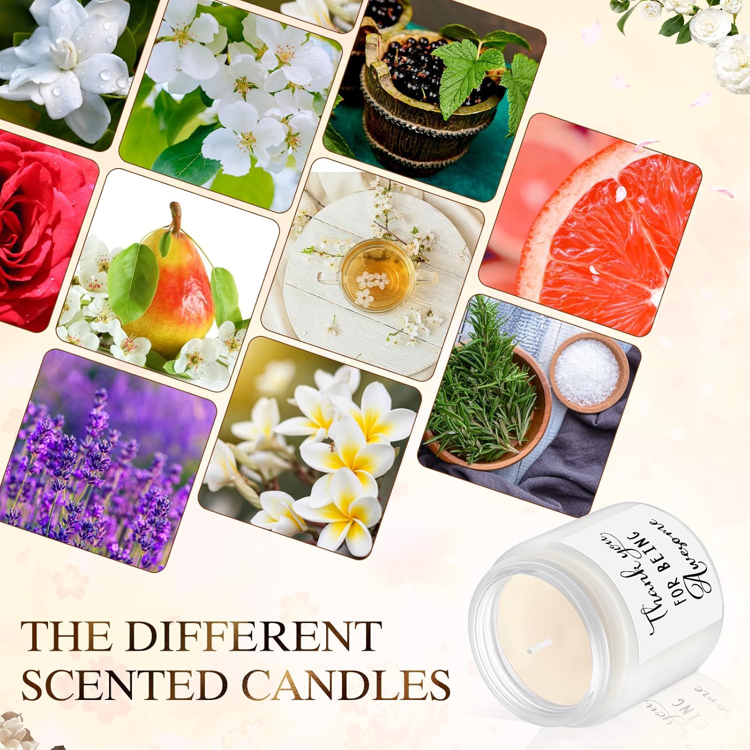 - Sufficient Quantity: you will receive 20 thank you scented candles in 10 scents, including lavender, berry basil, neroli, grapefruit and bergamot, gardenia, jasmine, white tea, sage salt, rose, English pear freesia, 2 of each scent; The aroma is rich and sufficient, and can be given to family, friend, employee, etc., to express blessings