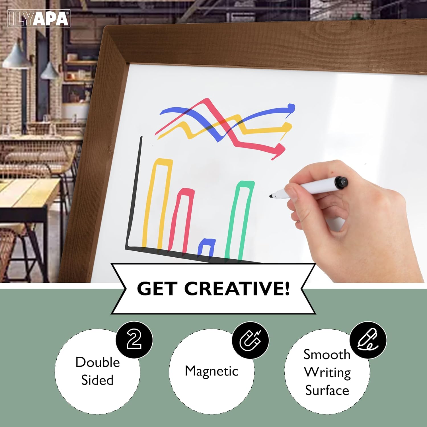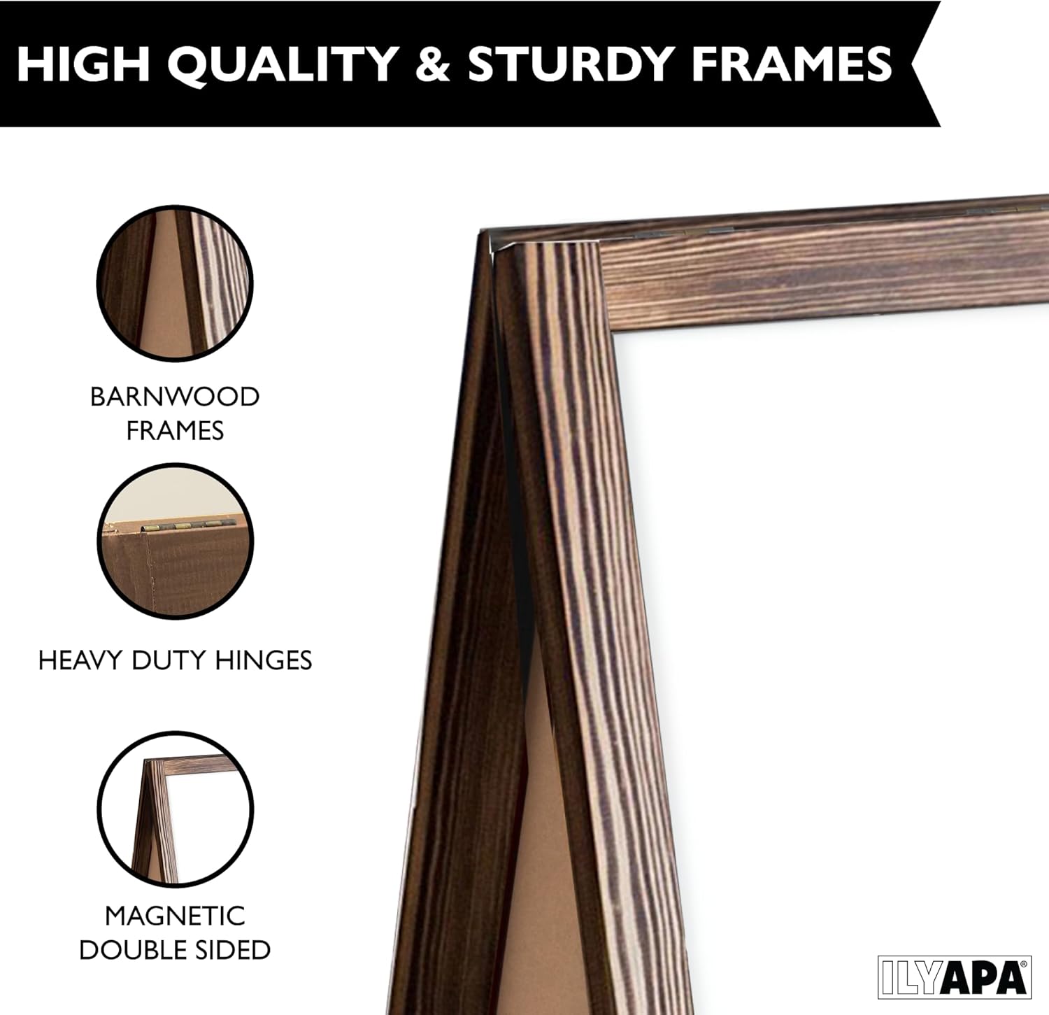 Ilyapa Wooden A-Frame Whiteboard Sign - 40 x 20 inch Magnetic Dry Erase Sidewalk Menu Board - Rustic Barnwood Menu Display for Restaurant, Business