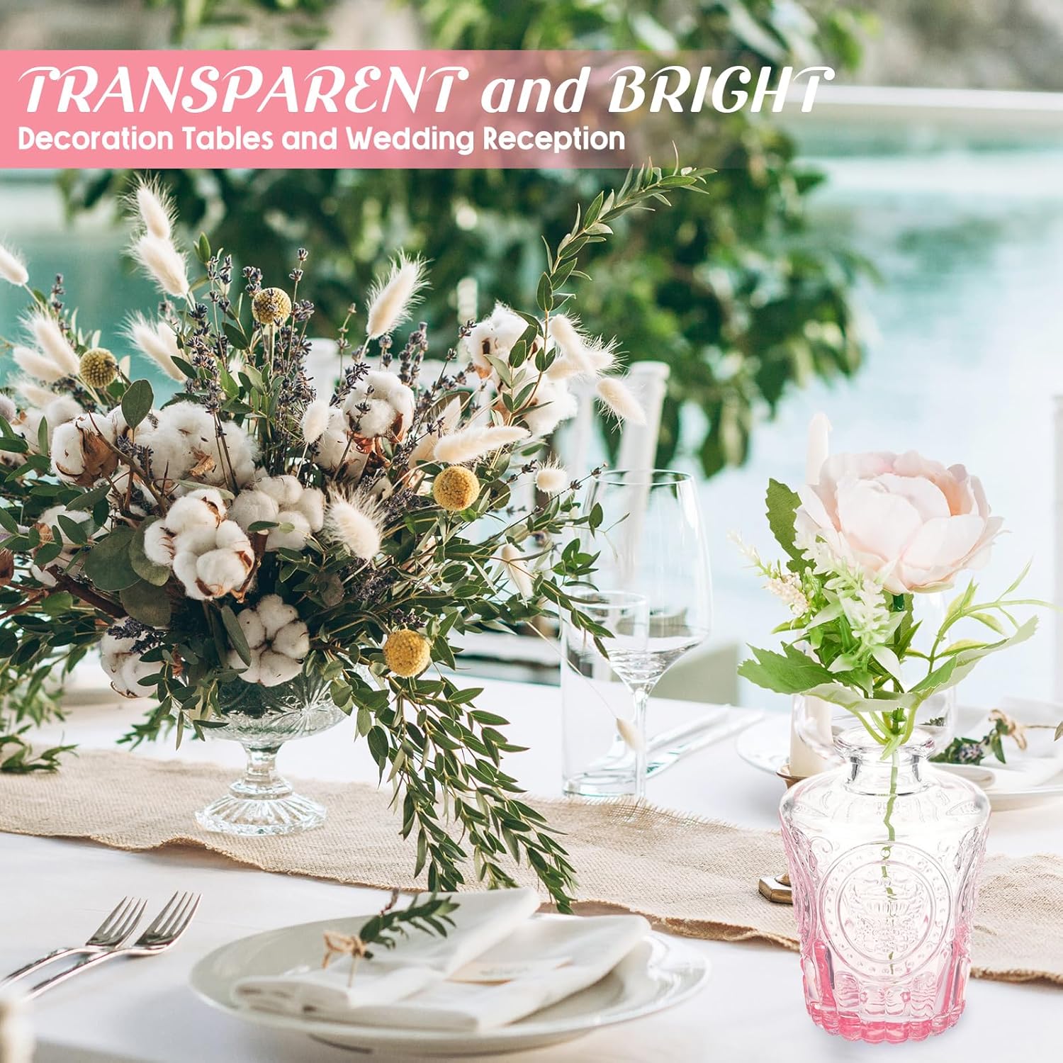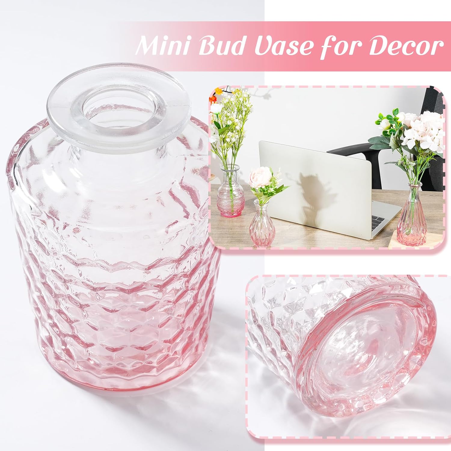Inbagi Glass Vase, 20 Pcs Set of Small Vintage Flower Vases in Gradient Pink, Decorative Centerpieces for Home, Wedding Table, Christmas Decoration