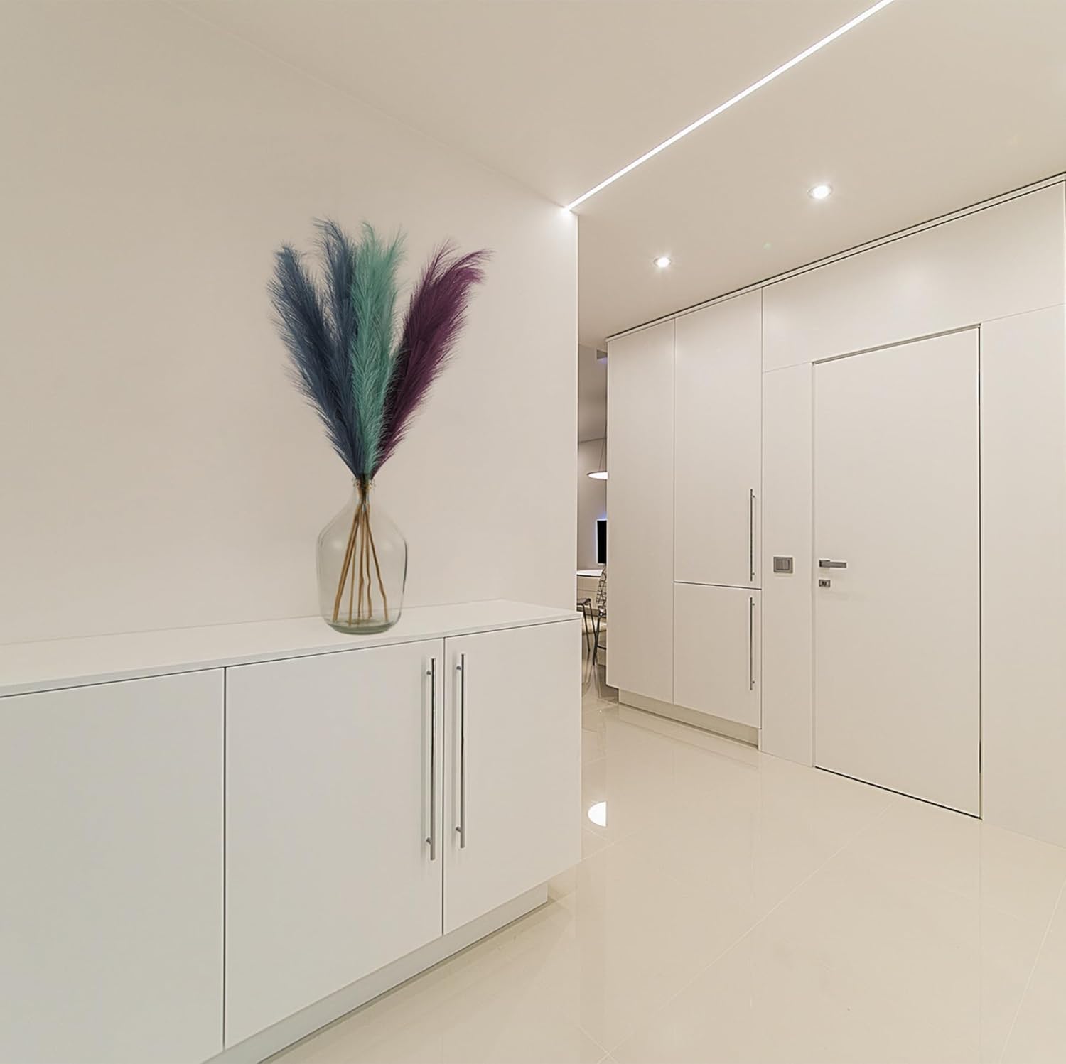- Minimalistic&Elegant Pampas Grass Decor: Really nice faux pampas grass for home decor, display in your hallway, kitchen, living room, bedroom, front room, dining room, or entryway... any space. Pampas grass are also a great addition to weddings, flower arrangements, lifestyle photography, party, bohemian decorating and etc