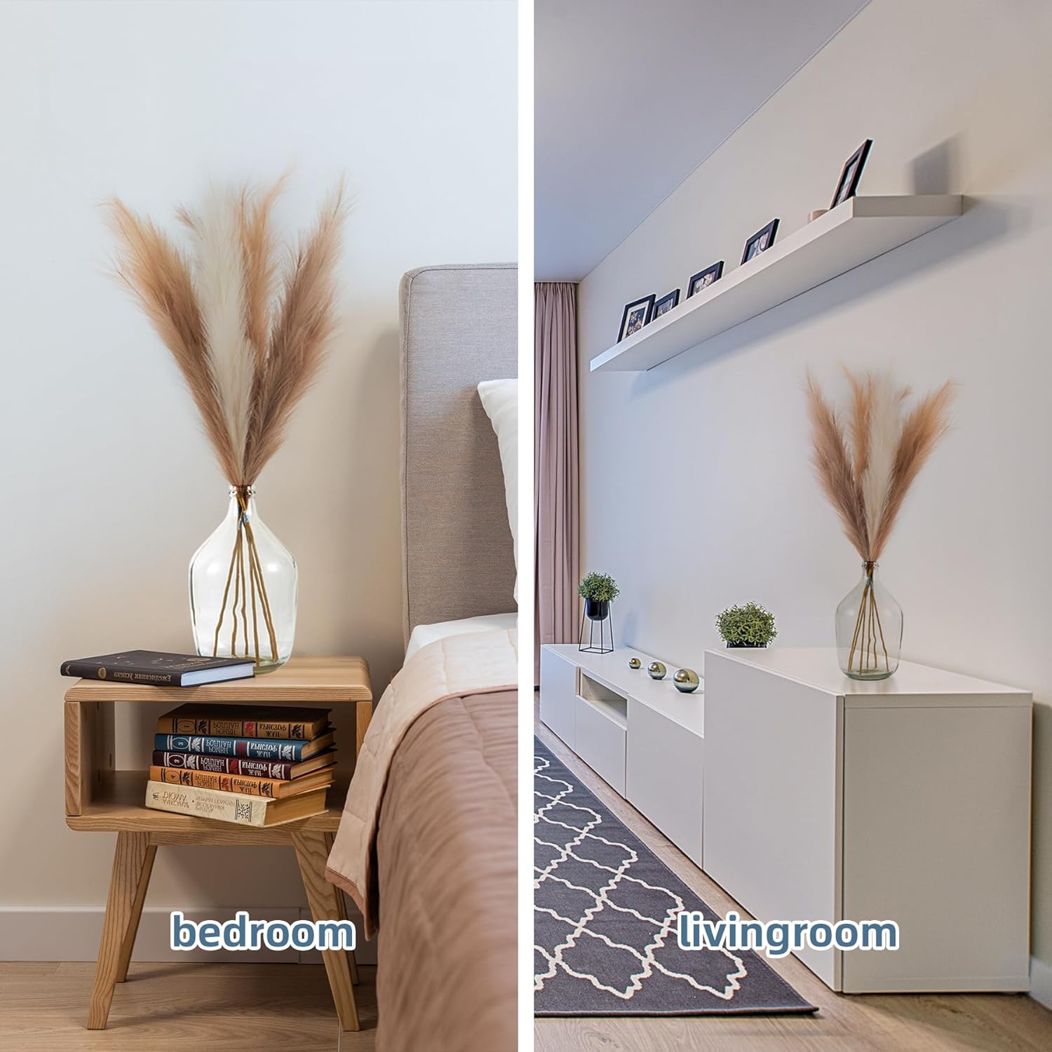 - Warm Color& Good Texture Pompous Grass: It comes with 6 long stems of extra fluffy and tall faux pampas grass They're nice and full and have a really impressive appearance, nicely with a variety of decorations! Packaging with box to avoid crushing during transit, hold their shape very well