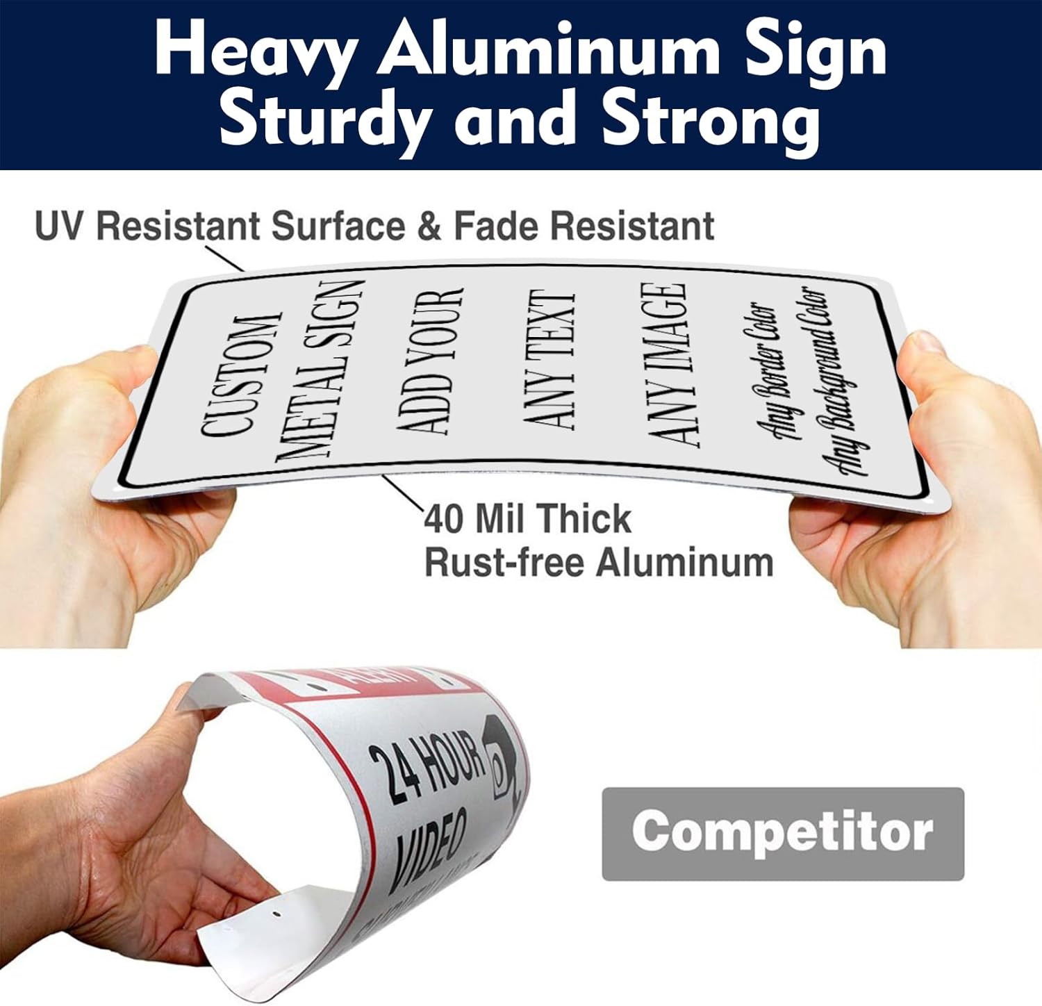 - Our metal signs are made of high-quality aluminum metal, it is rust-proof and durable, can be used for a long time and the text is clear and easy to read. The surface of the sign has a protective coating to withstand sun, snow, rain and cold.