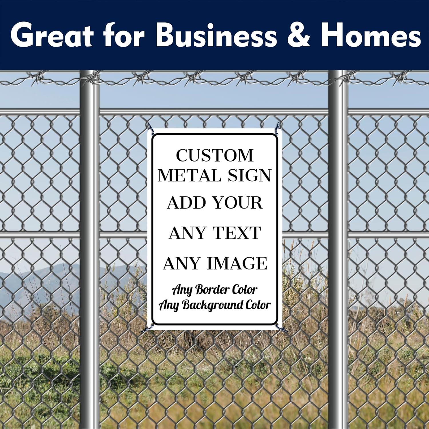 - 12 x 8 inch aluminum custom metal sign with 4 pre-drilled holes on the side that can be easily attached to any surface such as walls, doors or fences with cable ties or screws.