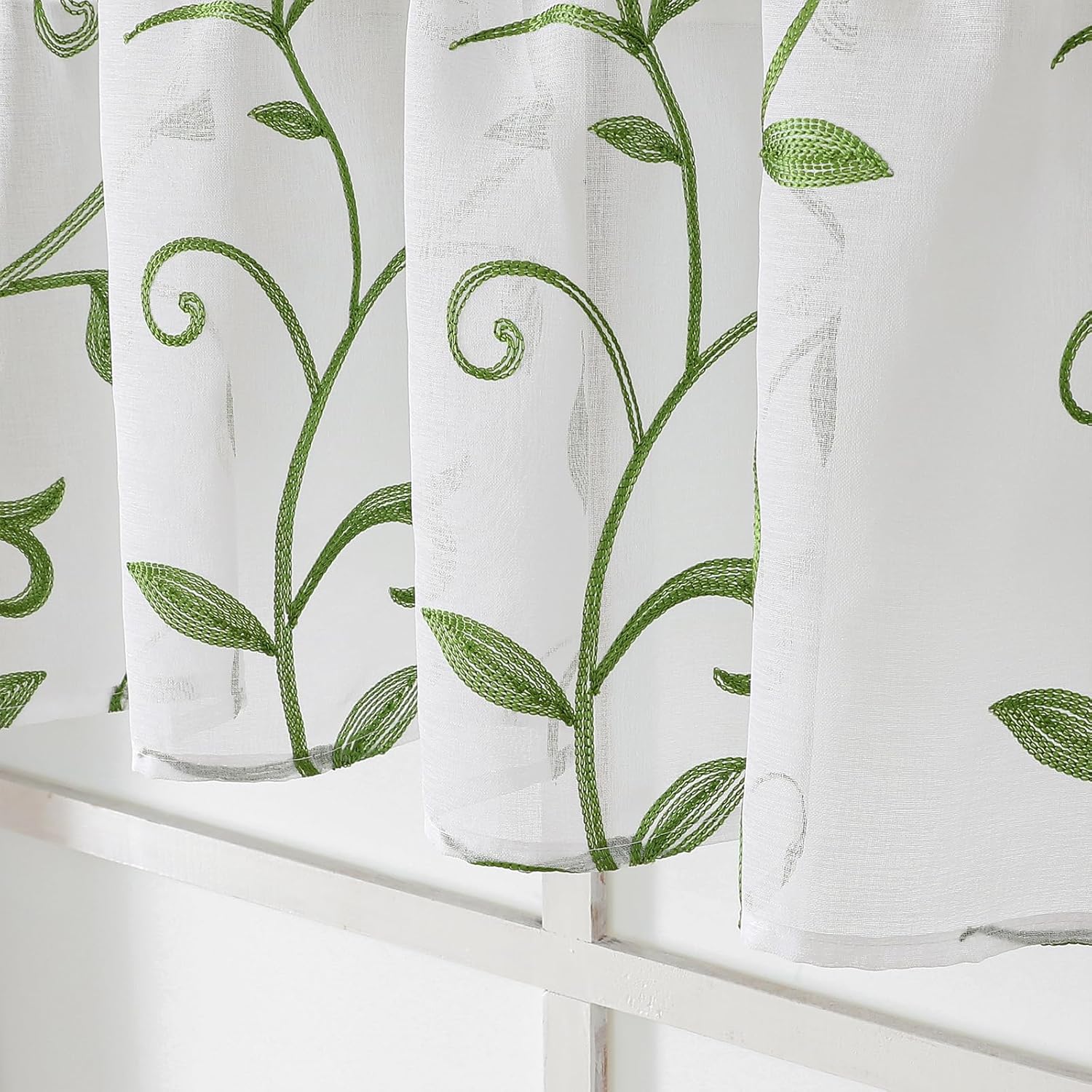 - Elegant embroidered design: Our window valance is designed with leaves embroidered pattern, add style and elegance to living space, perfect for kitchen, bedroom, living room, kids room or any window.
