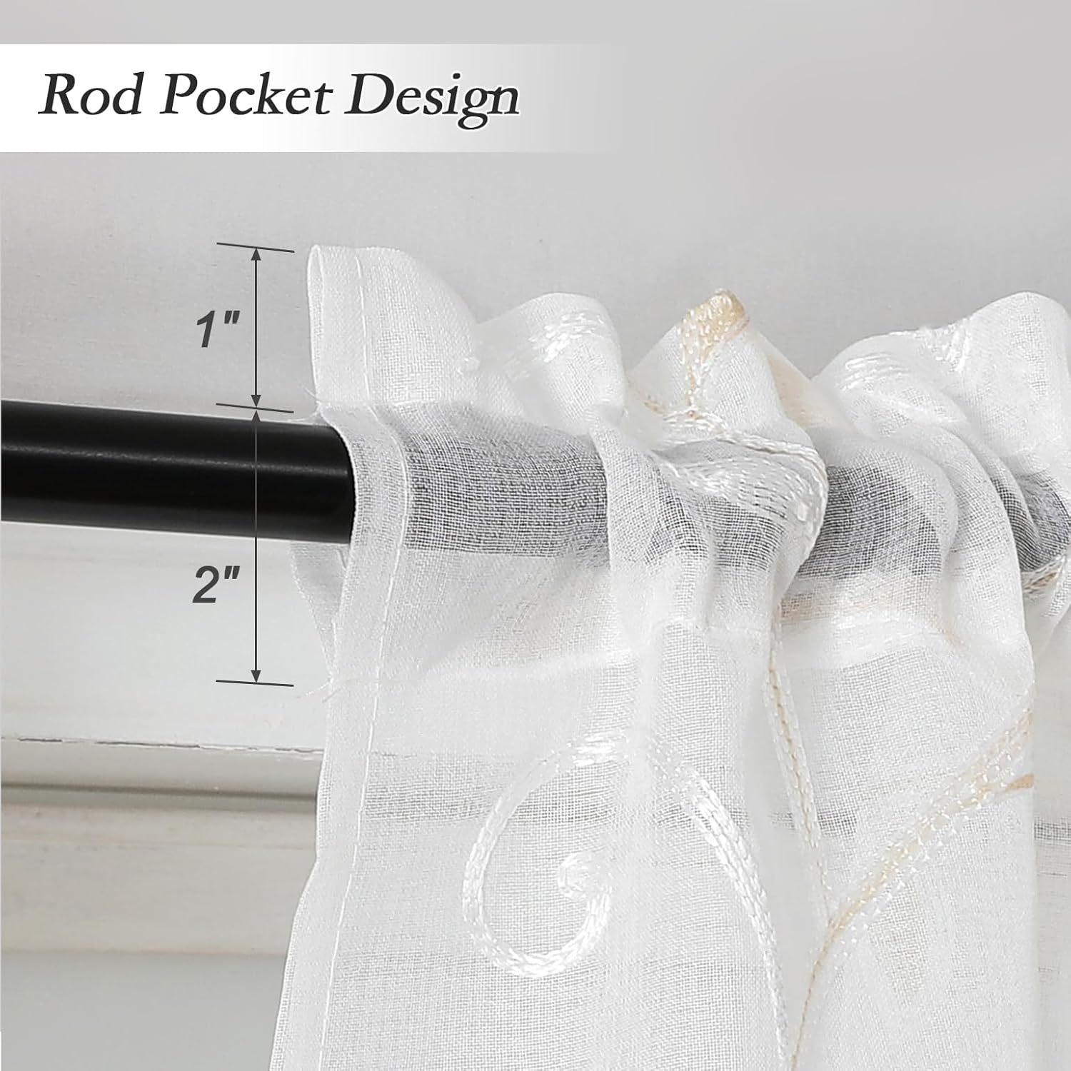 - Easy suspension design: The semi sheer valance use of a rod pocket construction, can be easily installed on curtain rods up to 2 inch in diameter, suitable for most curtain rods.