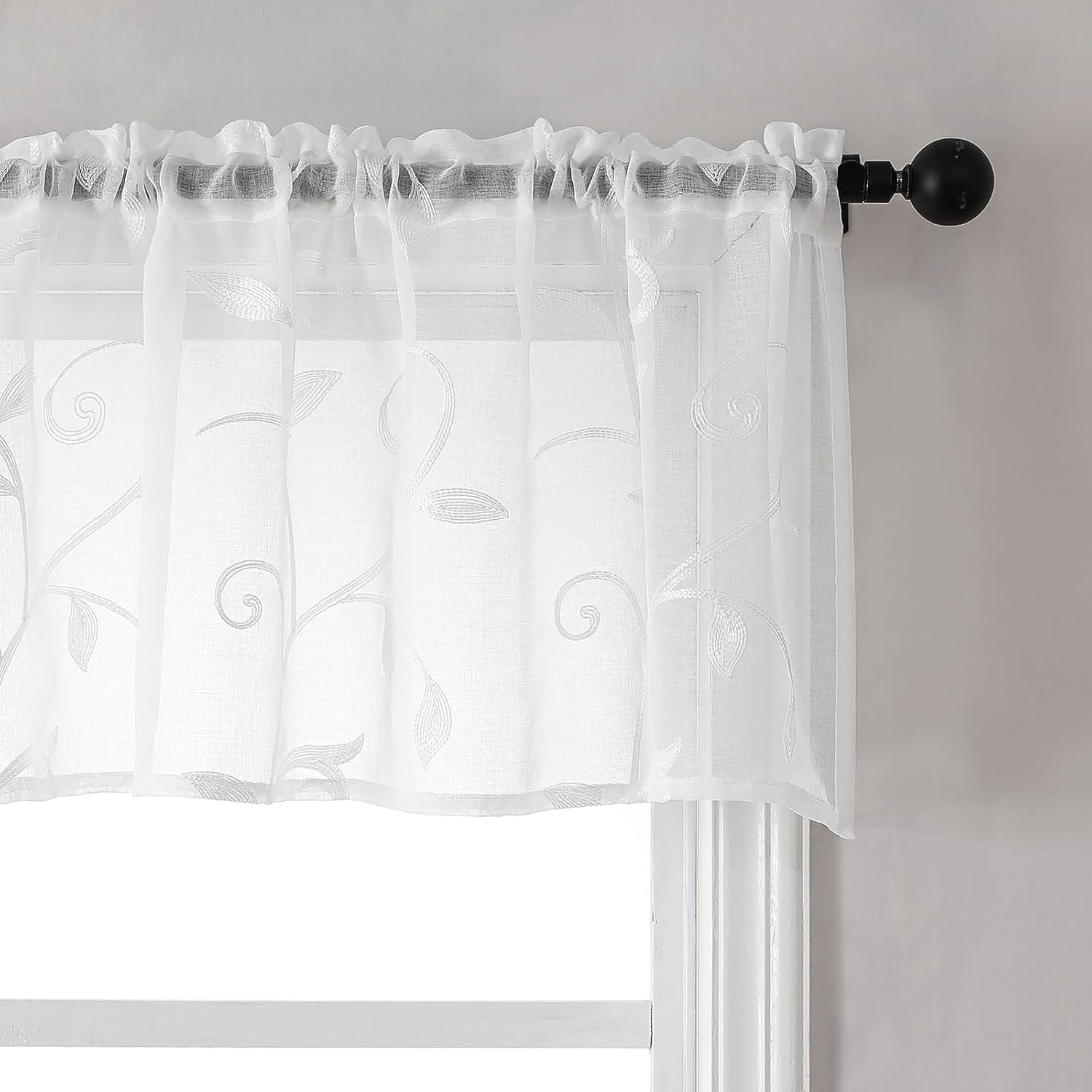 - Elegant embroidered design: Our window valance is designed with leaves embroidered pattern, add style and elegance to living space, perfect for kitchen, bedroom, living room, kids room or any window.
