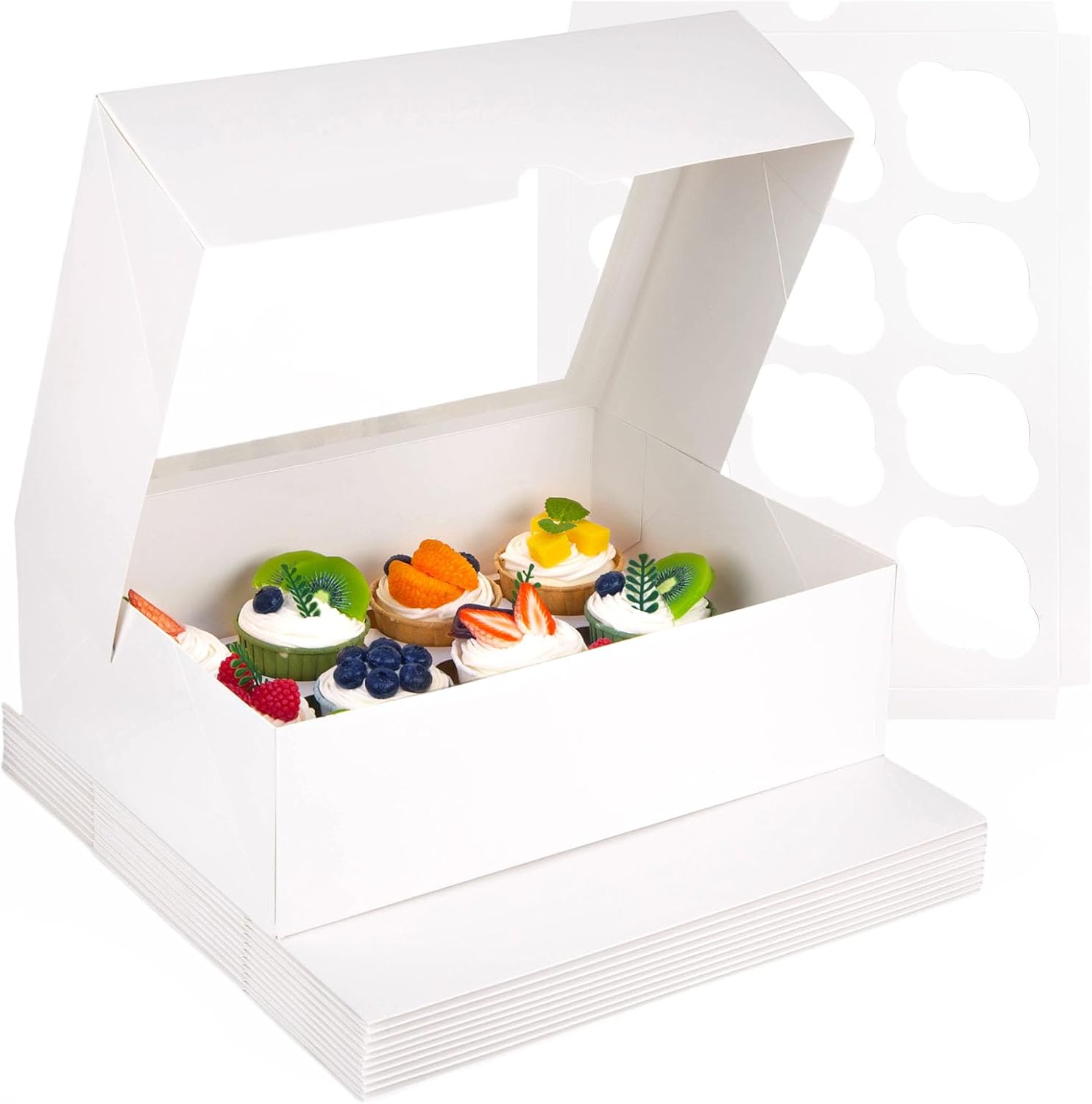 VGOODALL 12 Count Cupcake Boxes, 12PCS Cupcake Holder with Window White Pastry Boxes for Birthday Holiday Party Bakery Supplies