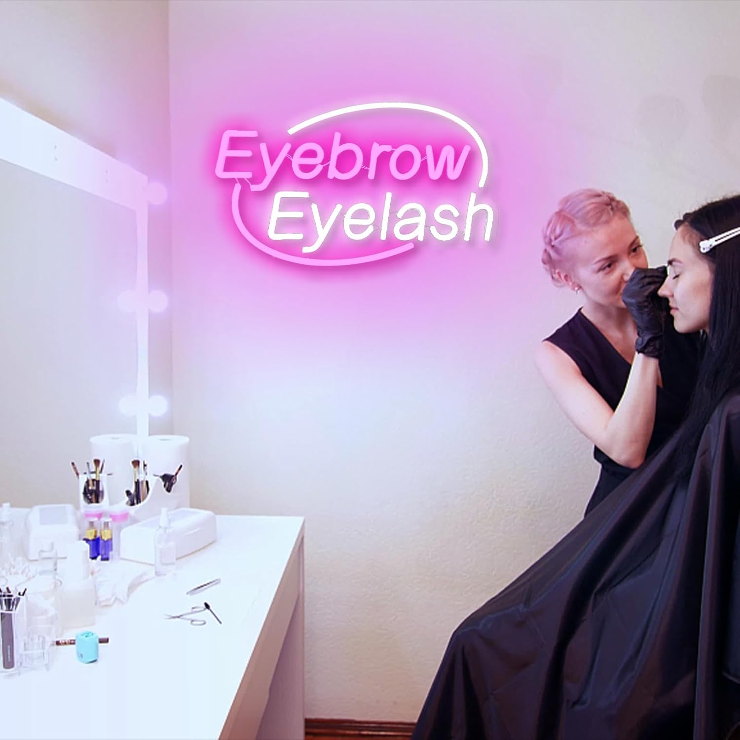 Eyebrows Eyelash Neon Sign, Pink and White Letter Neon Lights For Wall Decor, Girls Makeup Room Bedroom Beauty Salon Eyelash Studio Decoration(16.5 X 10.2 inch)