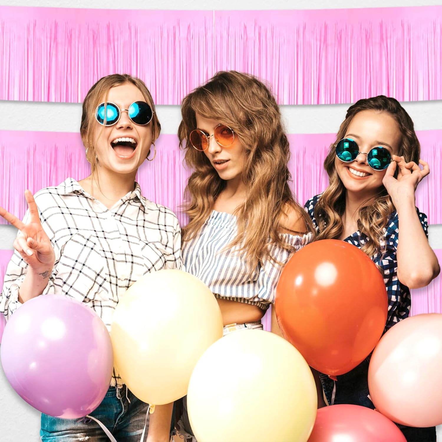 3 Pack 10 Long Macaron Pink Metallic Foil Fringe Garland Wall Hanging Tassle Banner, Mother's Day, Easter, Parade Floats, Birthday, Theme Party, Wedding Party Decorations