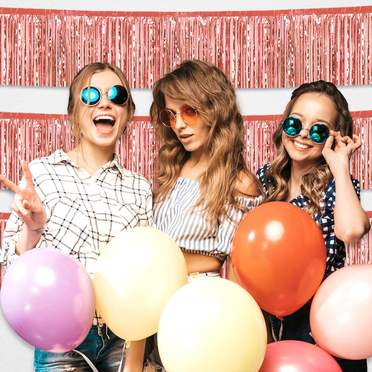 3 Pack 10 Long Rose Gold Metallic Foil Fringe Garland Wall Hanging Tassle Banner, Mother's Day, Easter, Parade Floats, Birthday, Theme Party, Wedding Party Decorations