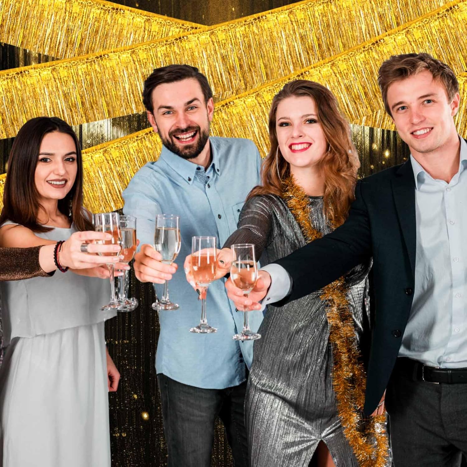 - As a shiny tassel banner, it is used along the top of the background curtain or anywhere you want to add shimmer. Suitable for patriotic display, homecoming floats, birthday parties, theme parties, Halloween, Christmas, New Year's Eve, singles parties, sex revealing parties, anniversaries, Hollywood parties, weddings, Easter parties, disco party decorations, carnival parties, bride shower, baby shower, graduation ceremony and so on.