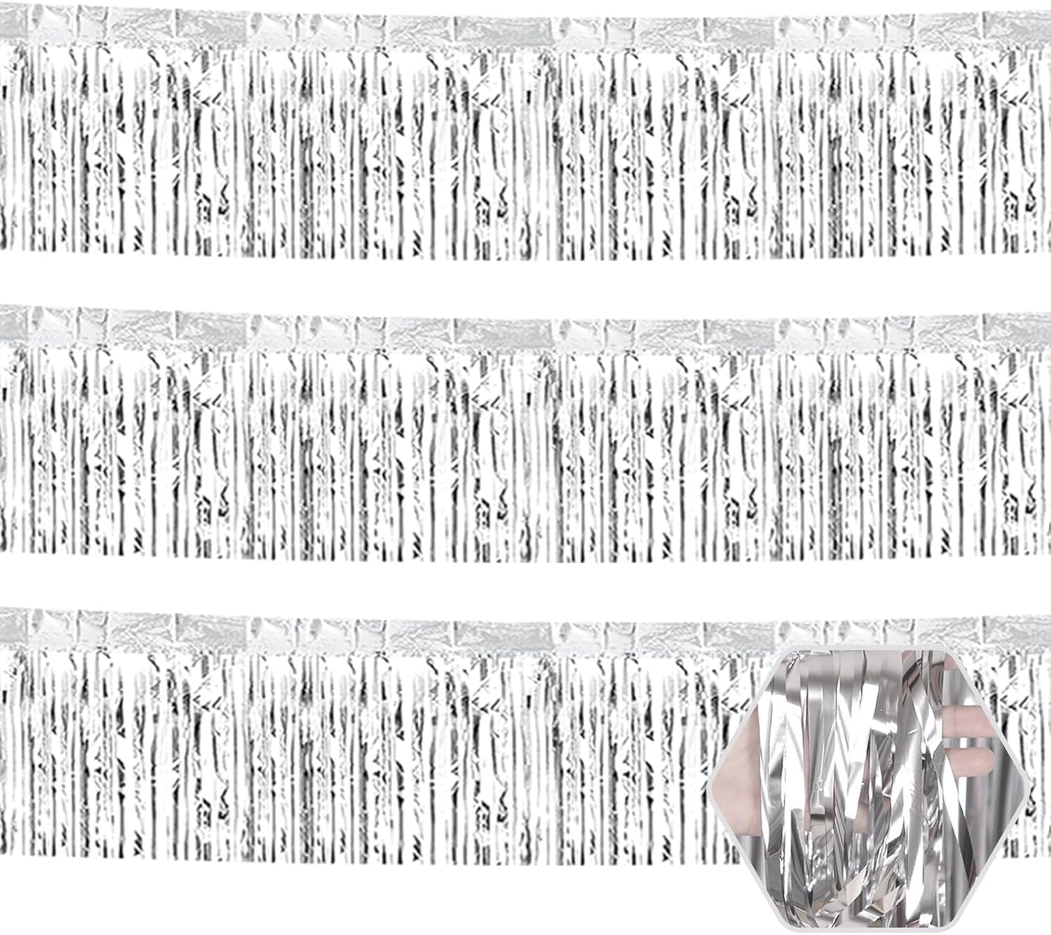 3 Pack 10 Long Silver Metallic Foil Fringe Garland Wall Hanging Tassle Banner, Mother's Day, Easter, Parade Floats, Birthday, Theme Party, Wedding Party Decorations