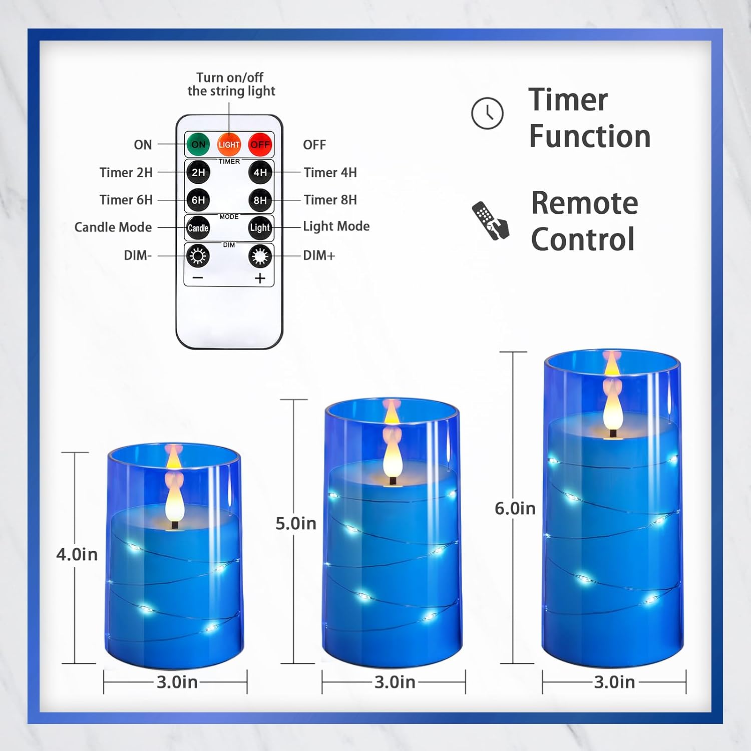 NURADA Flickering Flameless Candles: 3D Wick Built-in Star String Lights Acrylic Unbreakable Battery Operated LED Pillar Candles with Remote and Timer - 3 Pack for Wedding Valentine's Day Decor