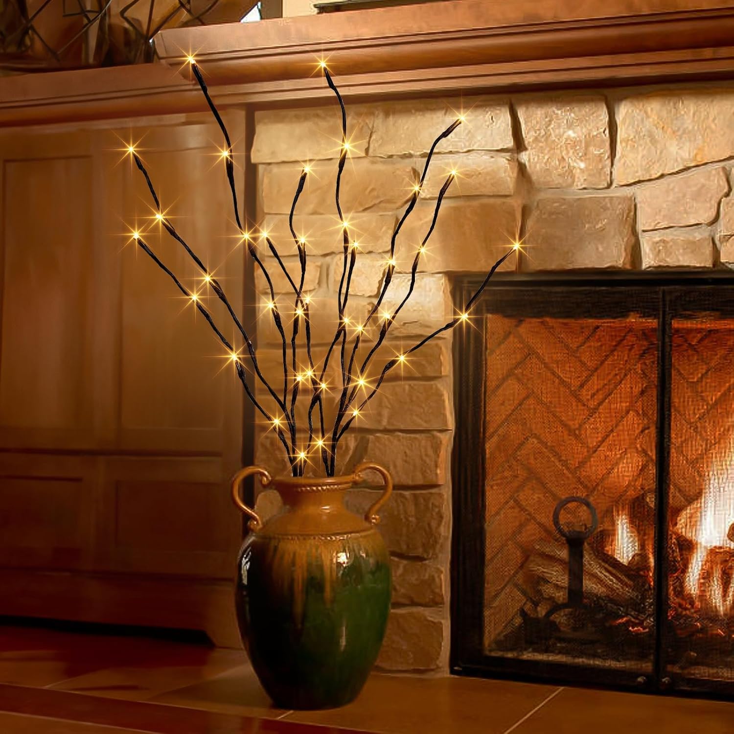 - TWIG LIGHTS: Including 2PK branches, 2 ground stakes, and 1 Battery case. 40LT warm white light illuminates together, making people feel warm