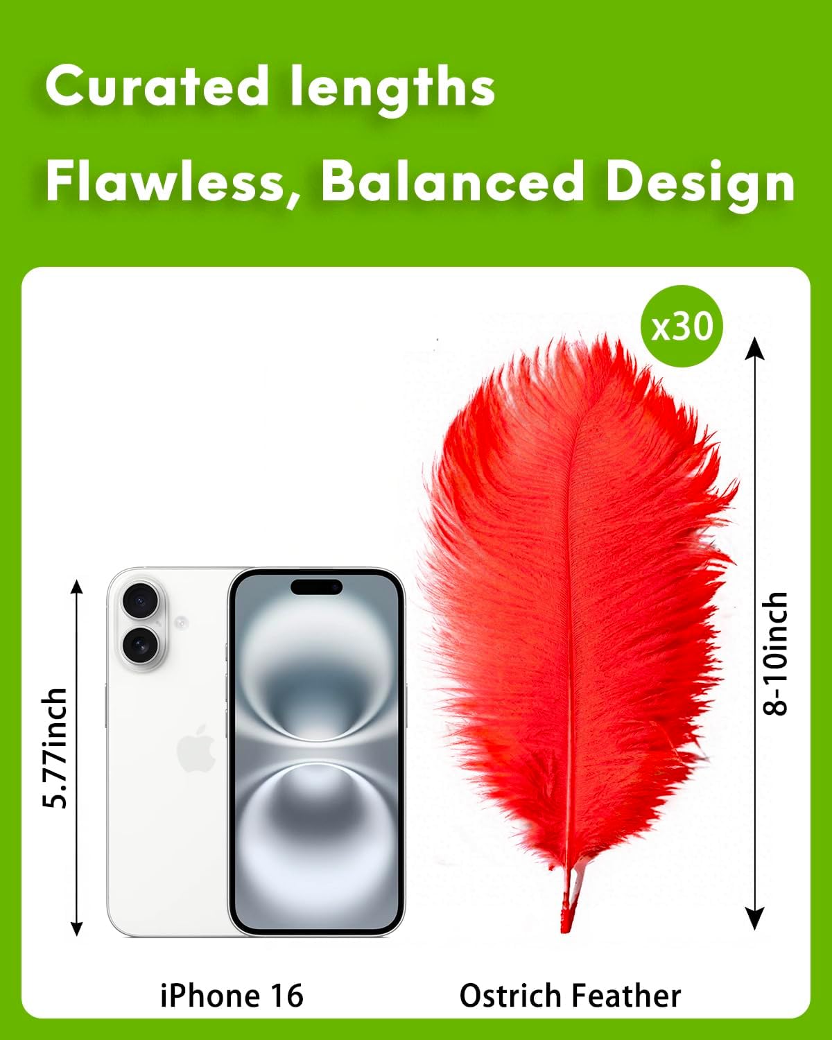 - Package:Each pack has 30pcs natural ostrich feathers.Our feathers are carefully selected by the workers, so each one is plump with good quality warranty.