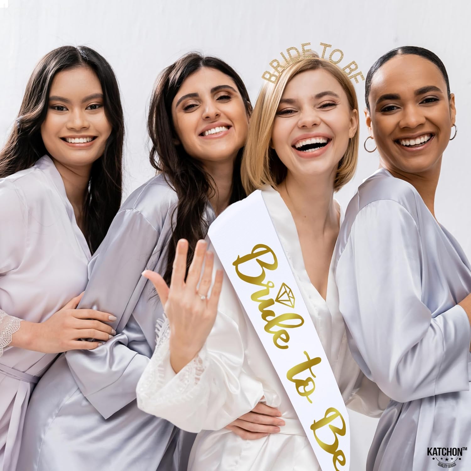 KatchOn, Gold Bride To Be Sash and Headband - Pack of 2 | Bachelorette Sash and Crown for Gold Bachelorette Party Decorations | Bride sash for Bridal Shower Decorations