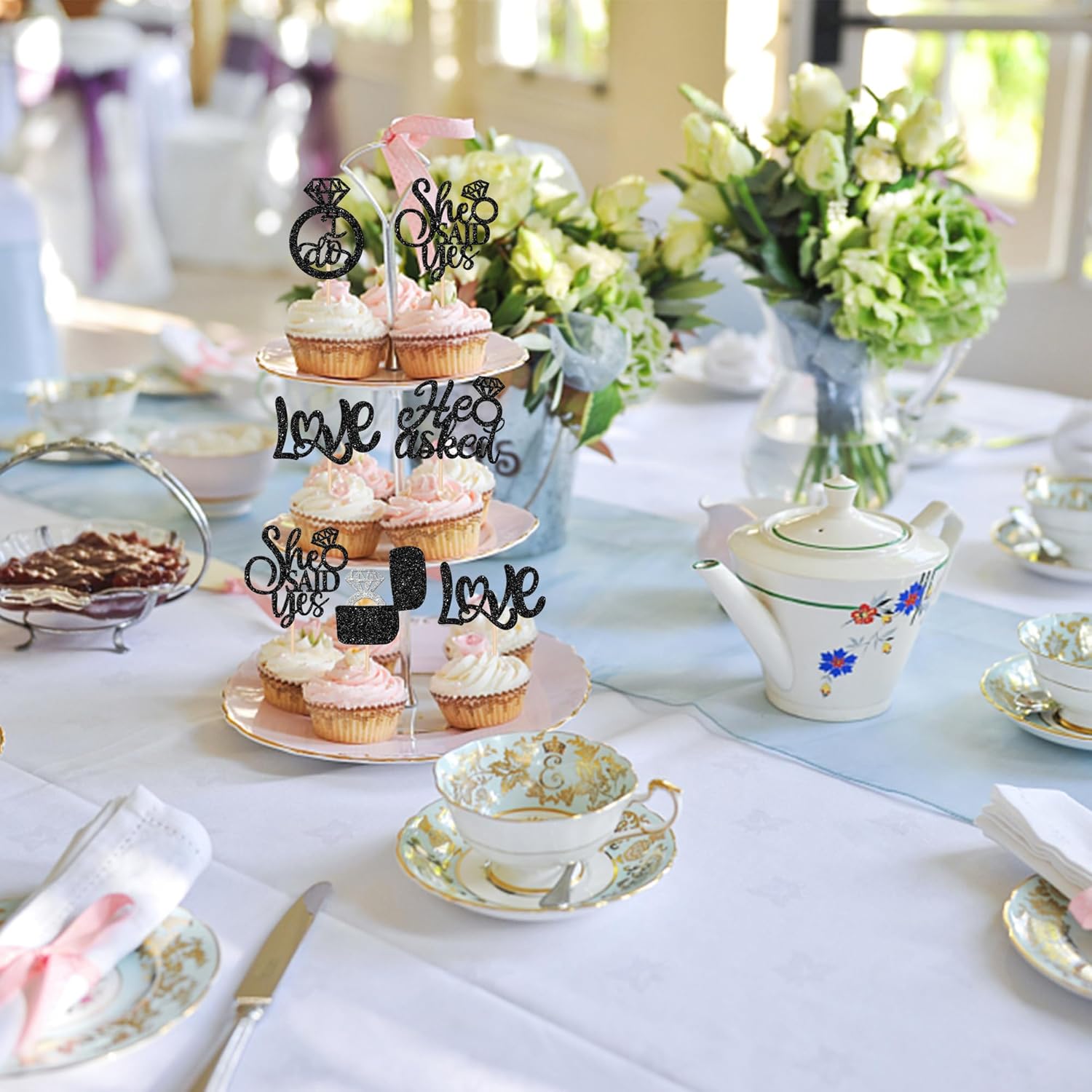 - Wide Usages ! These cupcake toppers are perfect for wedding engagement theme party, bridal shower theme party, he asked she said yes theme party cupcake decorations , they can make your cupcake more attractive and bring the fun to your party.You can also apply them for ice cream, fruits, cookies and other desserts.