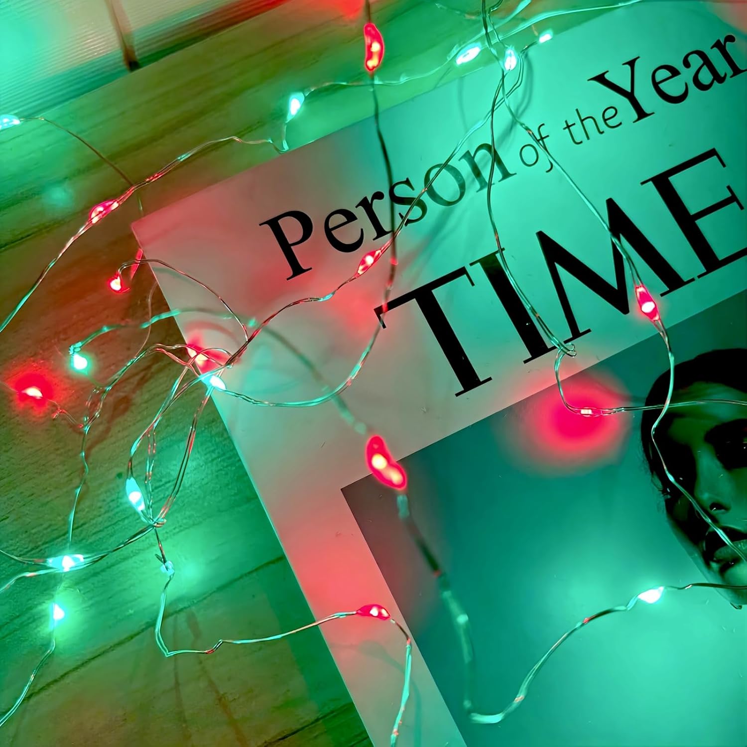 4-Pack 50 LED Fairy Lights Battery Operated with Timer, 16FT Waterproof Starry Christmas Lights Outdoor Indoor Mini Twinkle String Light for Bedroom Home Wedding Party Christmas Decor (Red and Green)