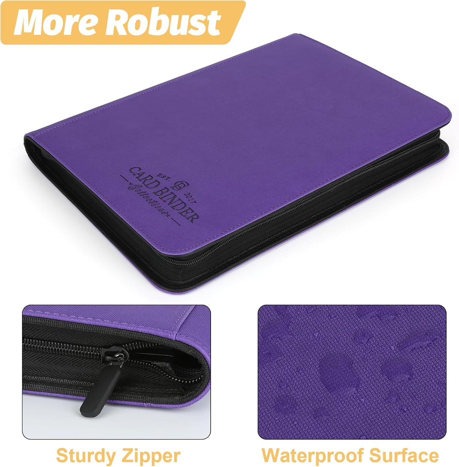 - 【Full Of Security】9 Pocket Trading Card Album Folder with side loading pockets designed to keep your cards securely in place. High quality zip keeps the Foalgo trading card folder closed when not in use. No more card spills.