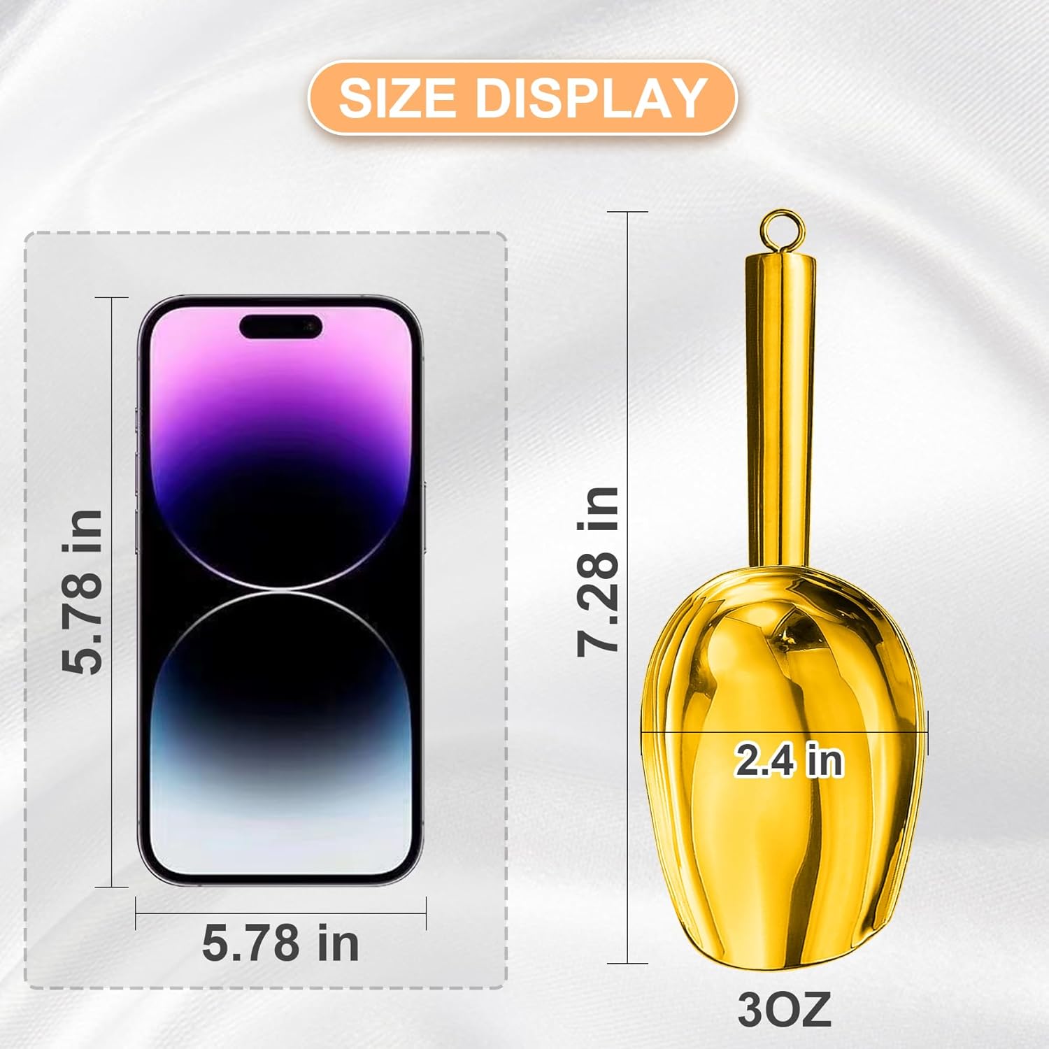 Metal Ice Scoop 3 Oz, Small Stainless Steel Ice scooper for Ice Maker Ice Bucket Kitchen Freezer Bar Party Wedding, Multipurpose for Coffee Bean,Flour Scoop,Dog Food Scoop (3 OZ-Gold)