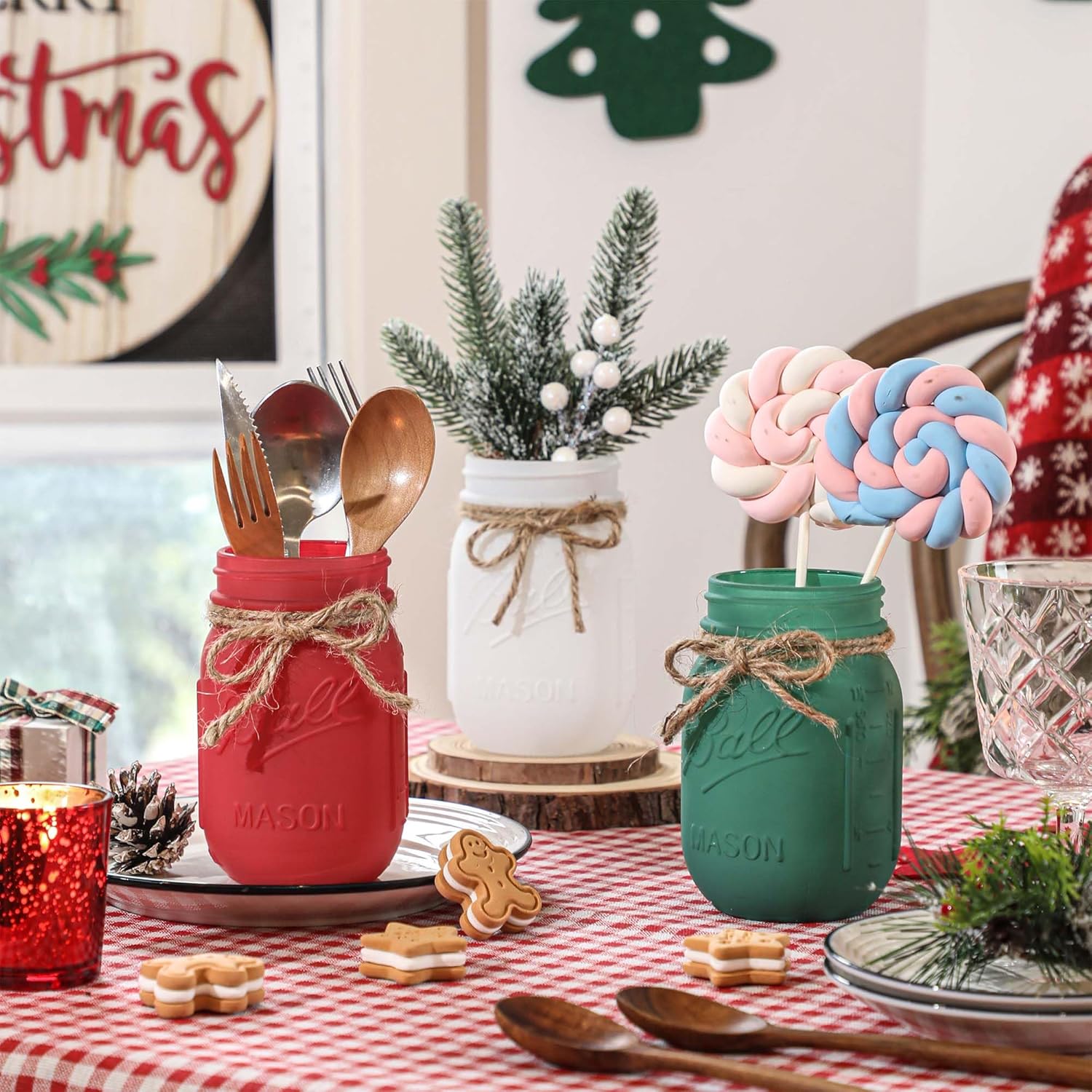 - 【Christmas Table Decoration】Colorful decorative jars with vibrant artificial plants are perfect Christmas table centerpieces to add vitality to your table. We're sure no guest will be able to resist marveling at your table decorations. These Mason jars are also perfect for living room decorations, Christmas decorations, Christmas kitchen decorations, Christmas table decorations.