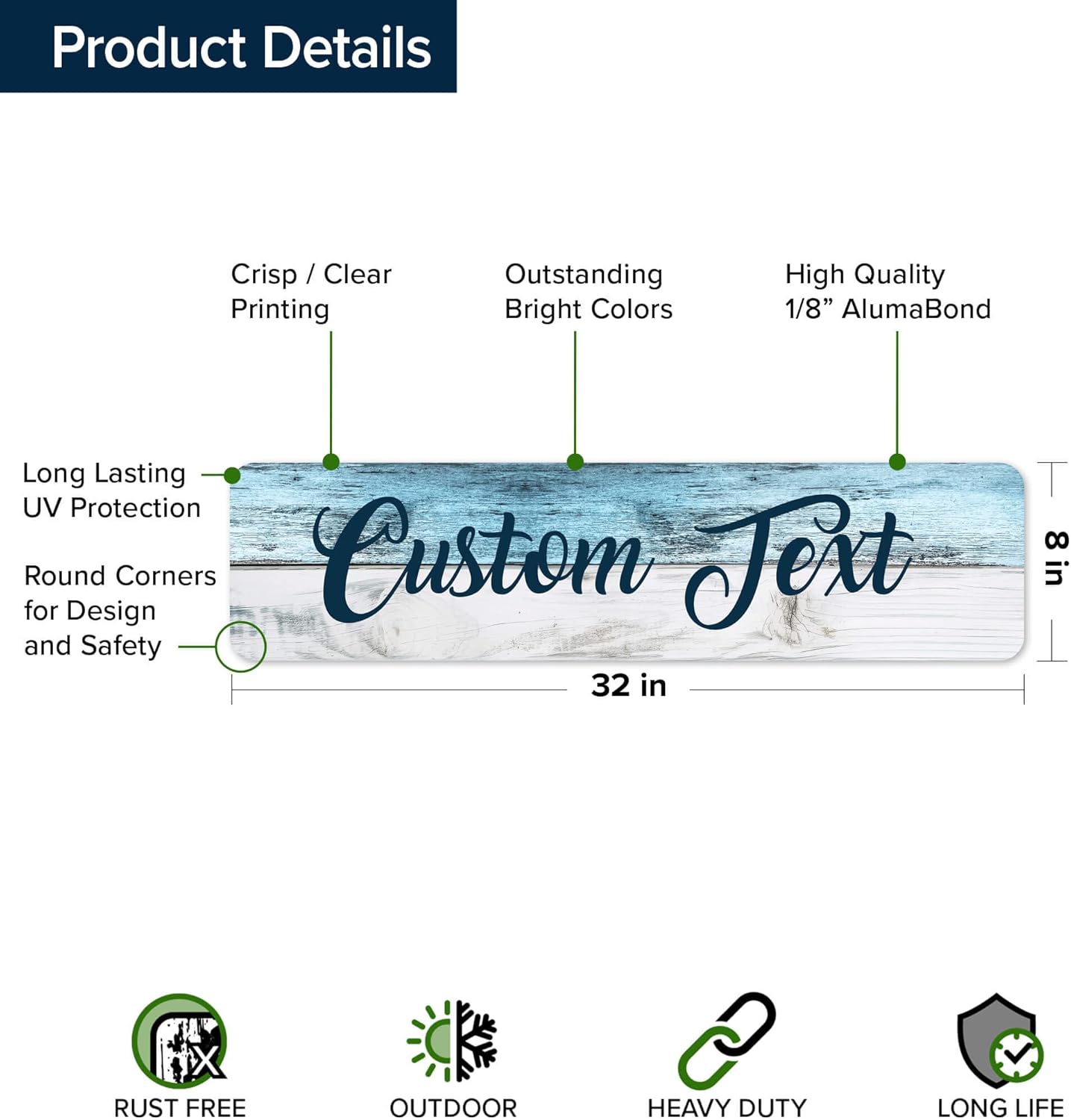 Custom Sign, Custom Street Sign, 11 Font Colors, 13 Font Styles, 4 Hole Options, 22 Sizes, 8x32 Inches, Rust Free DiBound, Fade Resistant, Made in USA by My Sign Center (Coastal)