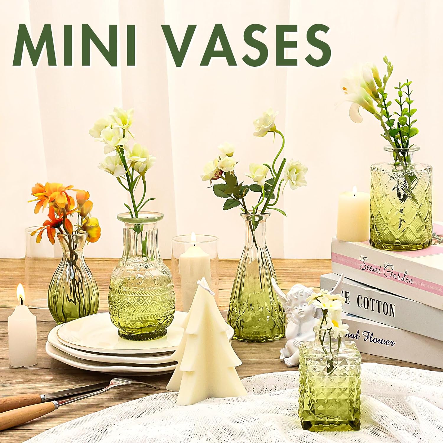 - Multi-Security: High-quality glass ensures that the green vases for decor are safe, non-toxic and non-irritating flavour that won't affect the flowers or pose a risk to human health. Each vase is tightly wrapped by thick styrofoam and thick cardboard box to avoid breakage caused by transport. Safe materials and packaging allow you to take these small glass vases for centerpieces home with peace of mind