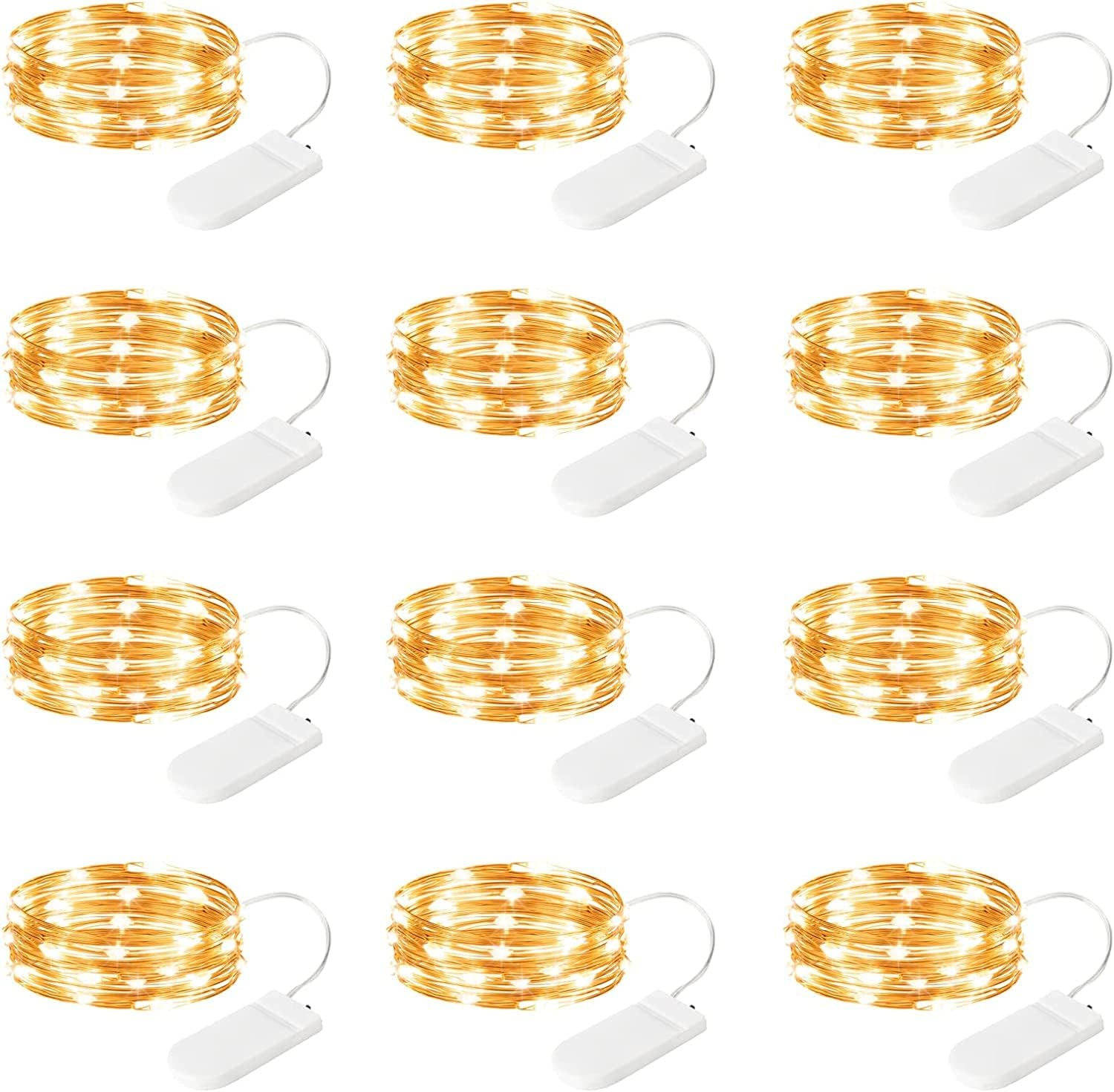 - 【 12 Pack Battery Operated LED Fairy Lights 】- Powered by 2 CR2032 batteries (included), the 7 feet micro fairy light with 20 upgraded energy-efficient LEDs is perfect for both everyday decorations as well as holiday decor. The thin copper wiring and small-sized LED bulbs will add a delicate and cozy touch to your personal space.