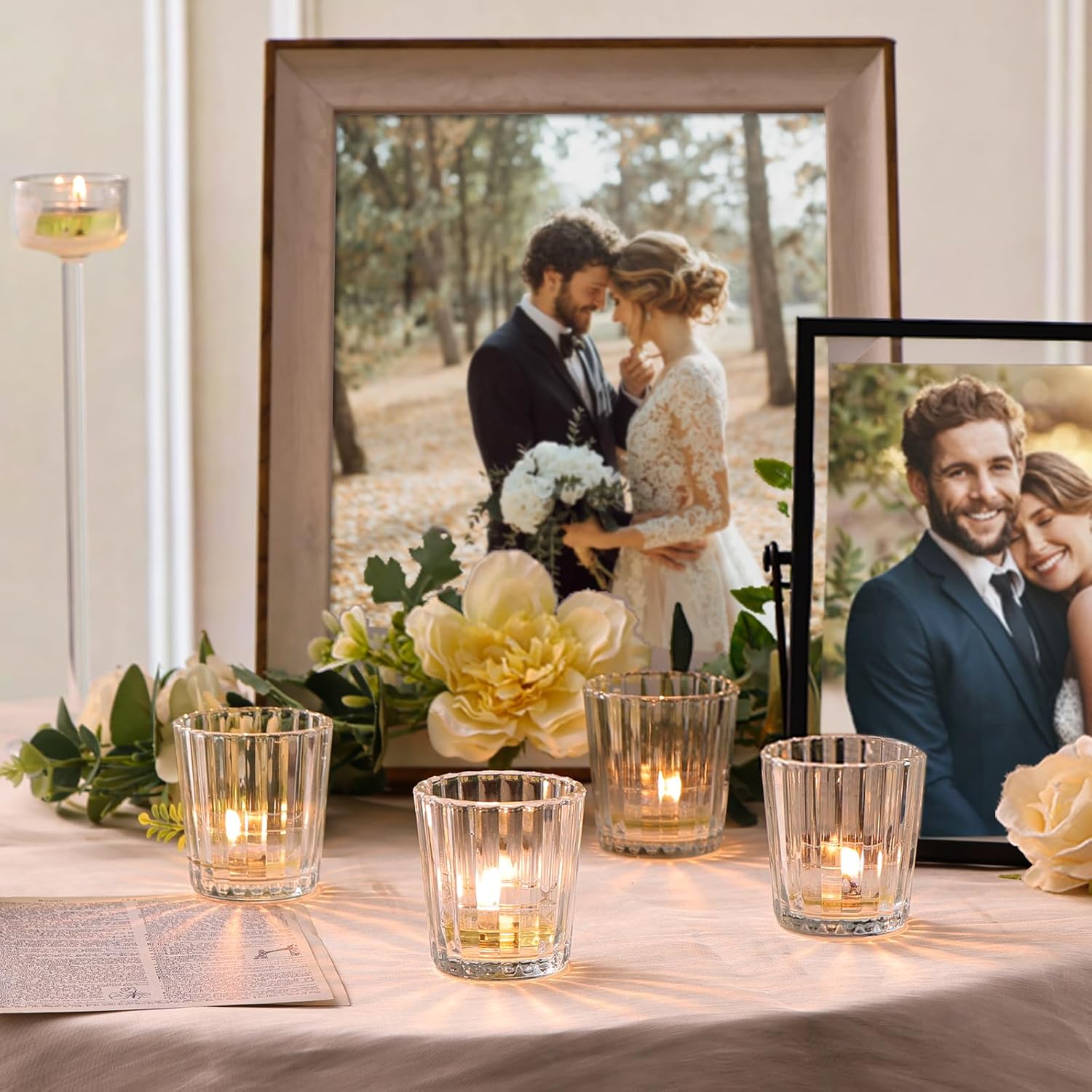 24pcs Vintage Ribbed Votive Candle Holders, Glass Candle Holder for Wedding Table Decor, Tea Lights Candle Holder for Table Centerpiece, Christmas, Holiday Decor