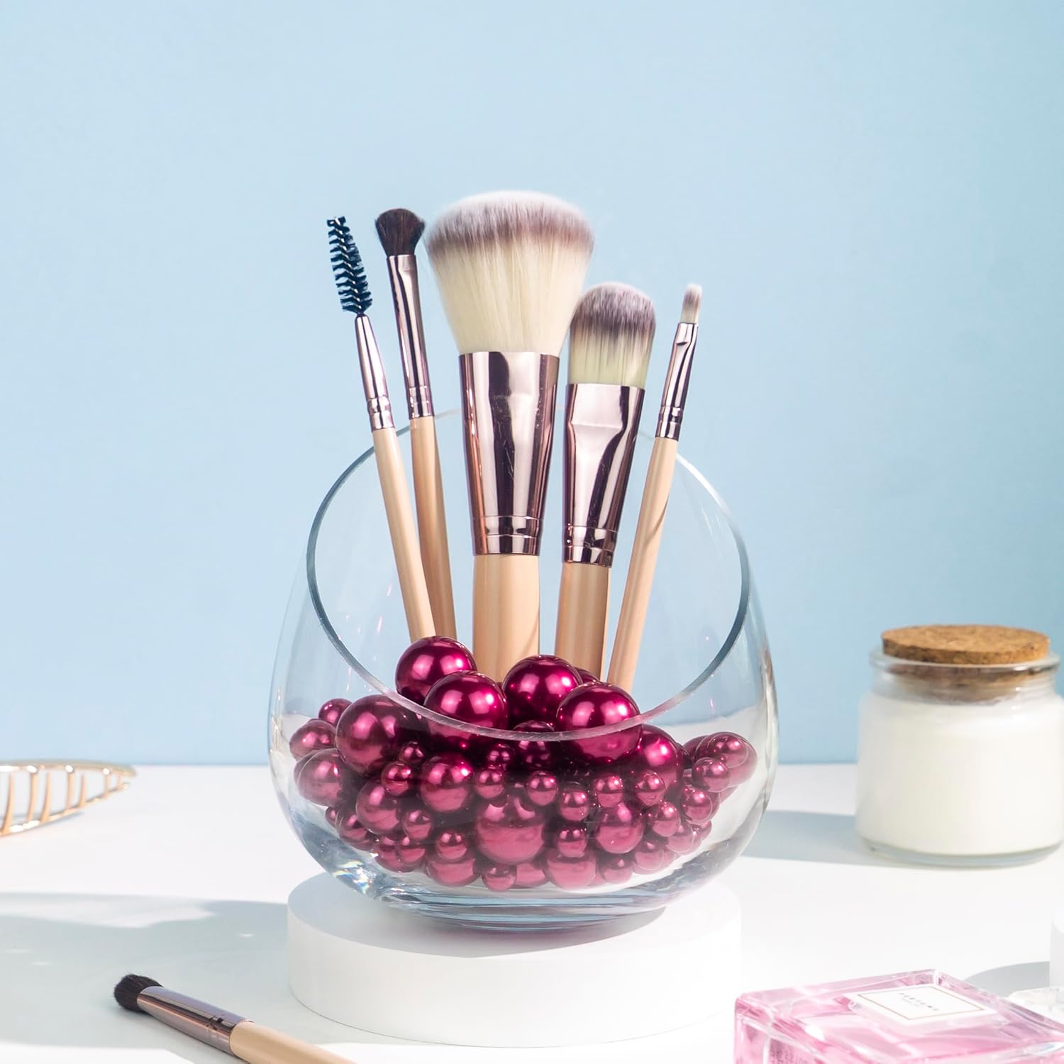 150Pcs Wine Red Polished No Hole Faux Pearl Beads for Vase Filling Decorations, Plastic Pearls Vase Fillers, Table Scatters, Wedding Centerpiece, Home Decor, 8/14/20 mm