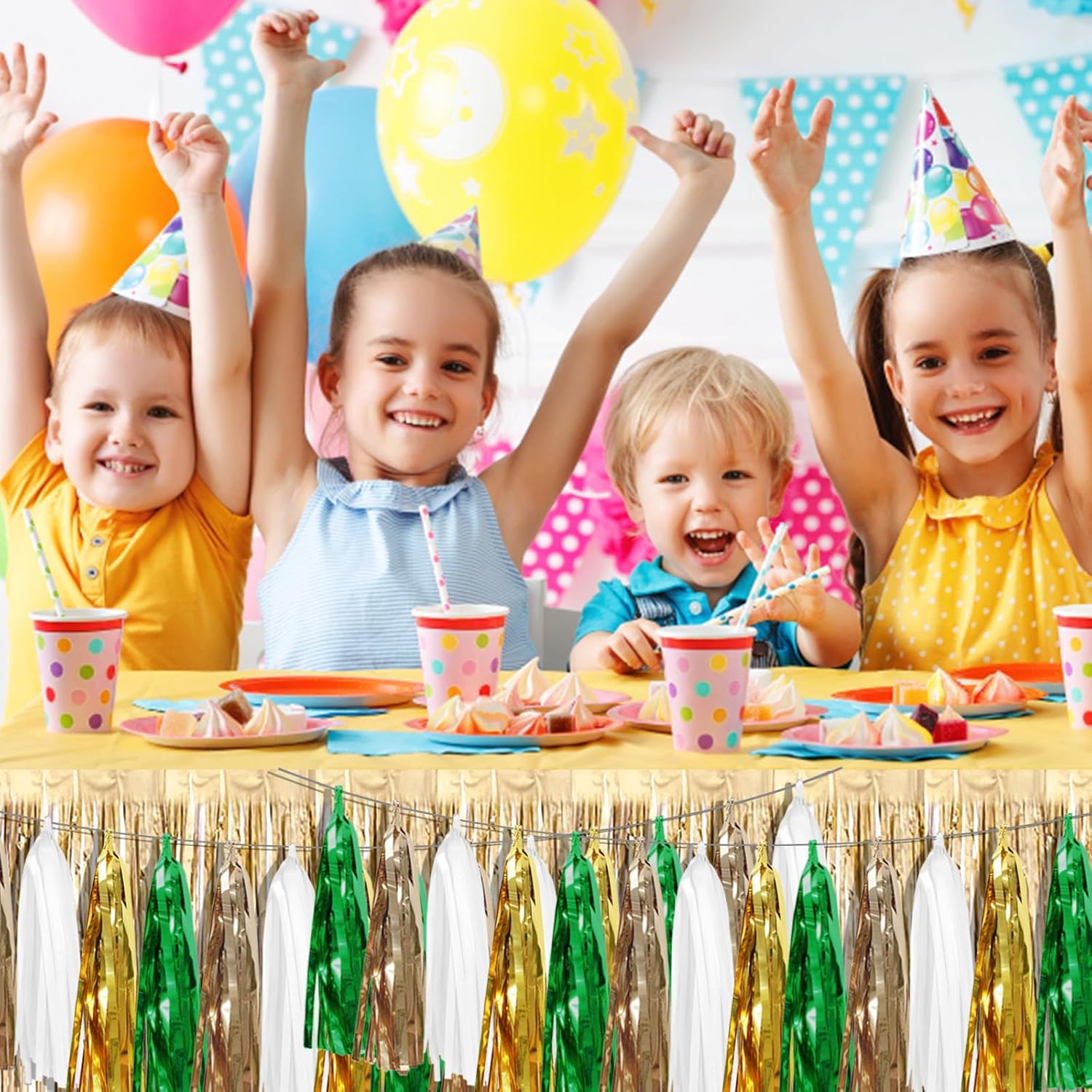 - 【Reusable Paper Material】: high-quality metallic foil tassel garlands, with the virtue of nice craftsmanship and lightweight, they are reusable and safe, and not easy to fade; They come with white ribbon for hanging, and garland tassels hang perpendicular to the string, and are adjustable to provide you with the option of spreading the tassels out or piecing them closer together.