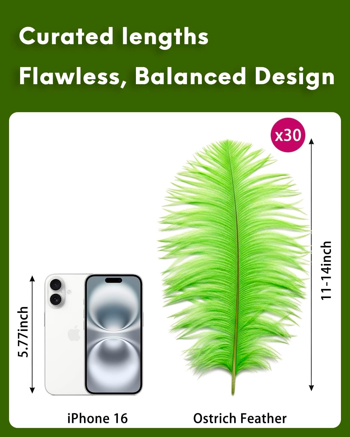 NEWONG 30pcs Fruit Green Ostrich Feathers Natural Bulk 11-14inch(28-35cm) Vase Craft Wedding Home Party Centerpieces Christmas Day Decoration