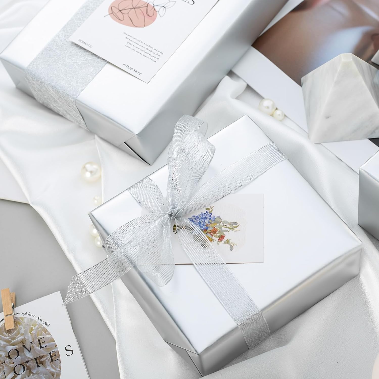 - Size:High quality water repellent silver wrapping paper, not easy to tear. 17 iinch * 33 feet Suitable for small and medium gift box packaging.