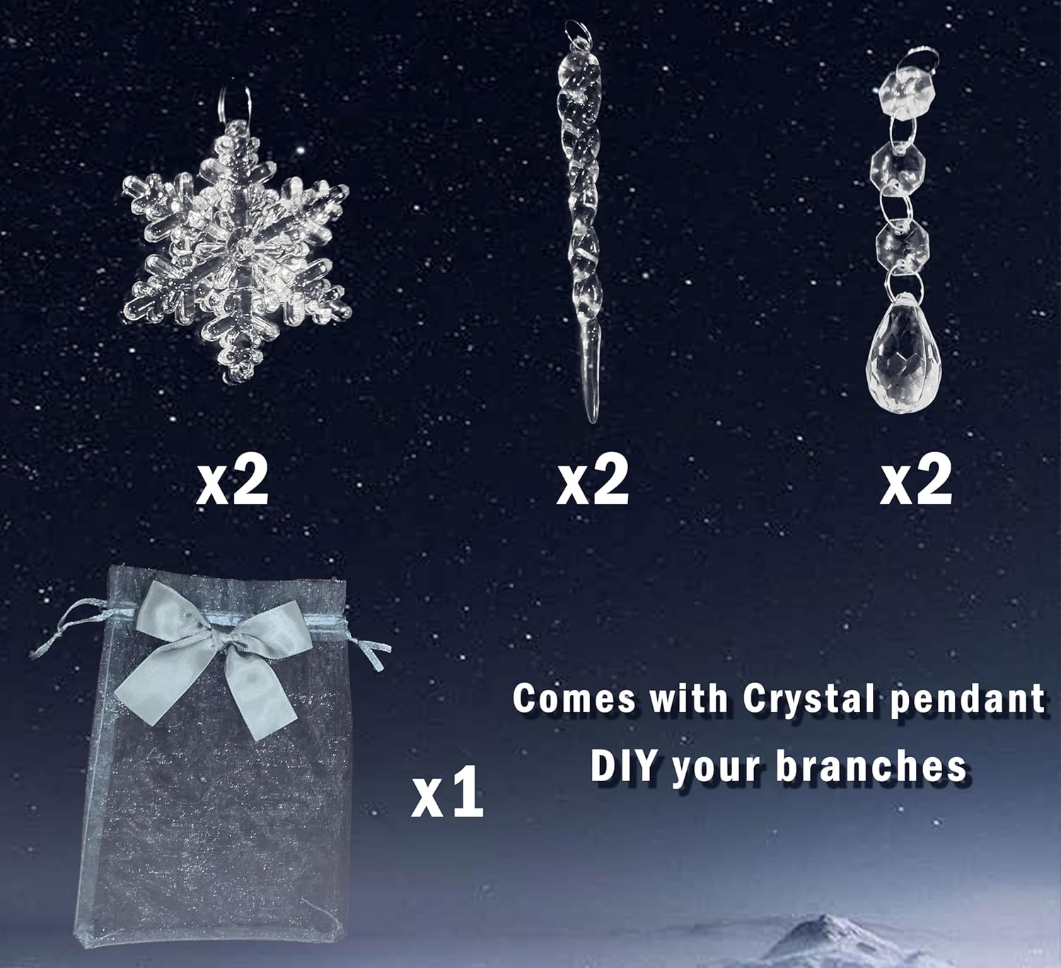 - π Bendable twig branches: These branches are strong but flexible,so you can shape them as desired,also you can hang your little ornaments for holiday-themed decorations or year-round festive use indoor or outdoor.(come with a set of crystal Pendant)