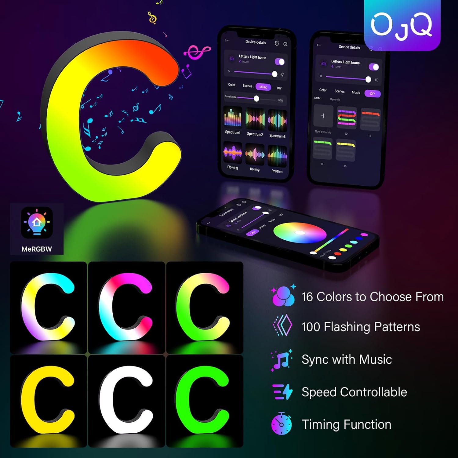 OJQ Light Up Letters LED Letter - Marquee Letters Room Decor Alphabet Letter Music Sync Color Change Colorful - Christmas Birthday Gifts for Girl - Teen Girls Gifts Party Home Wall Decor