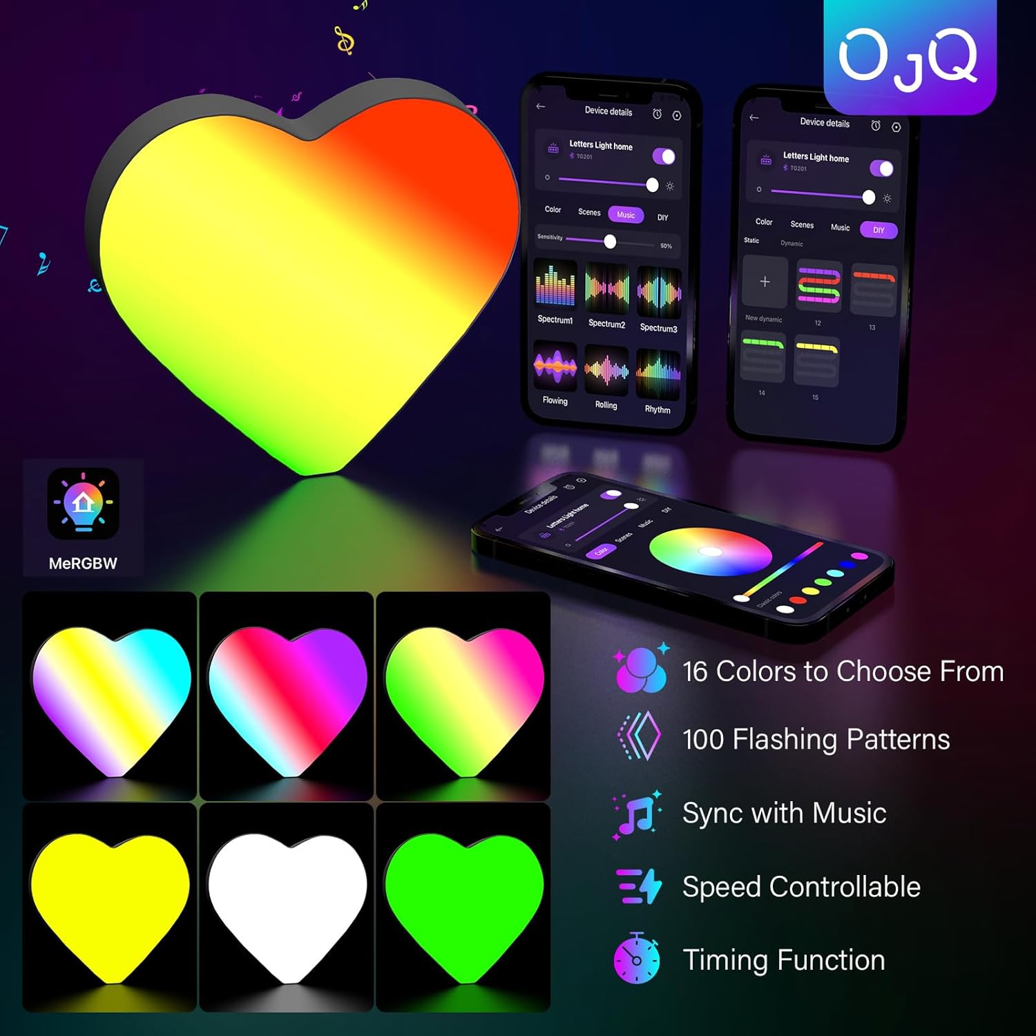 OJQ Light Up Letters LED Letter - Marquee Letters Room Decor Alphabet Letter Music Sync Color Change Colorful - Christmas Birthday Gifts for Girl - Teen Girls Gifts Party Home Wall Decor