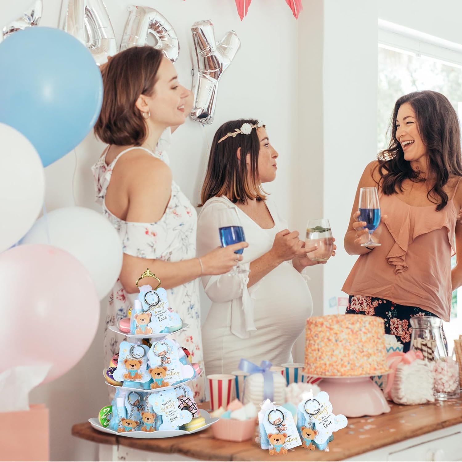 - Complete Baby Shower Favor Sets: enjoy a comprehensive baby shower favors set that are suitable for a baby shower; Each package includes 48 lip balms, 48 bear shaped soaps, 48 bear keychains, 48 organza bags, 48 thank you tags, and 48 bear shaped cards; These can be individually packaged in organza bags alongside a thank you tag, offering a sophisticated and heartfelt gesture to appreciate your guests