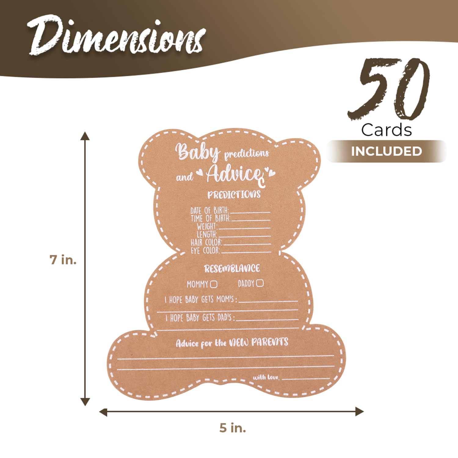 - Introducing our charming Teddy Bear-shaped Prediction and Advice Cards, a delightful addition to Teddy Bear-themed baby showers, "We Can Bearly Wait" celebrations, or enchanting Woodland-inspired gatherings. Each set comes with 50 of these adorable cards, offering both convenience and charm for your special occasion.